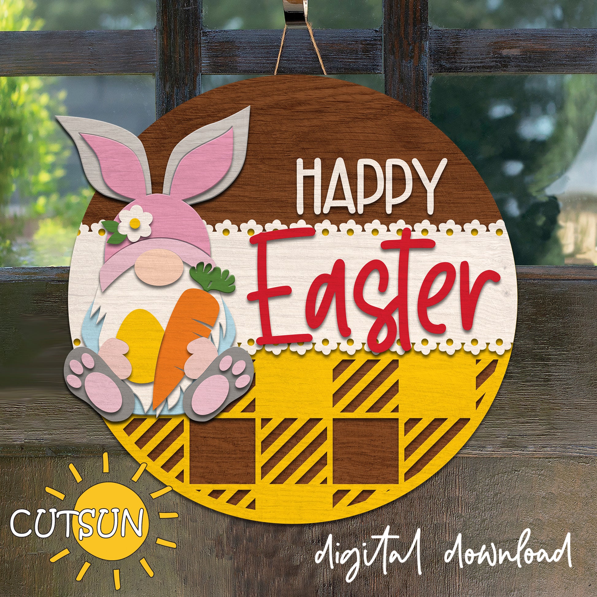 Easter Gnome Door hanger svg | Easter Gnome Buffalo Plaid Door hanger svg | Glowforge SVG | Laser cut file
