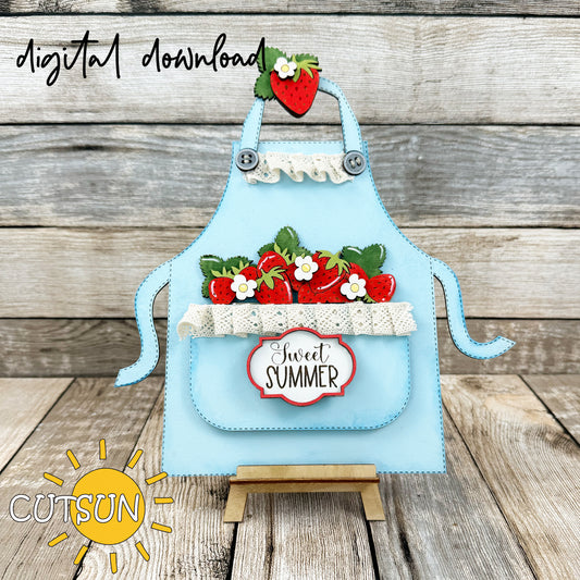 Sweet Summer Apron Add-On SVG | Strawberry Shelf Sitter Laser Cut File | Interchangeable Kitchen Decor