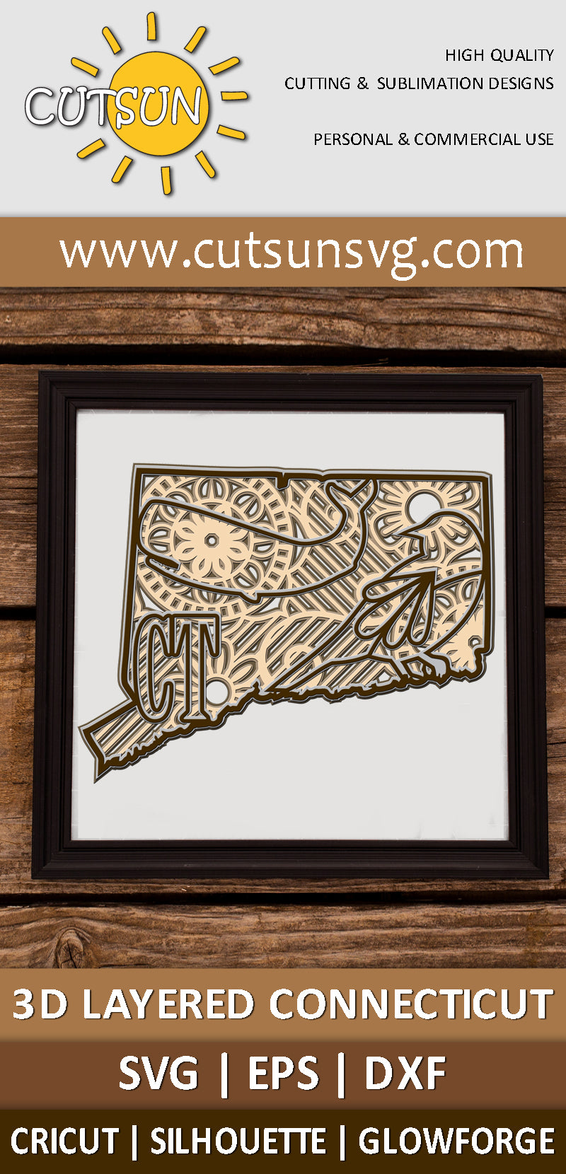 3D Layered Connecticut State Mandala SVG | Decorative Connecticut state design | Laser cut file | Cricut SVG