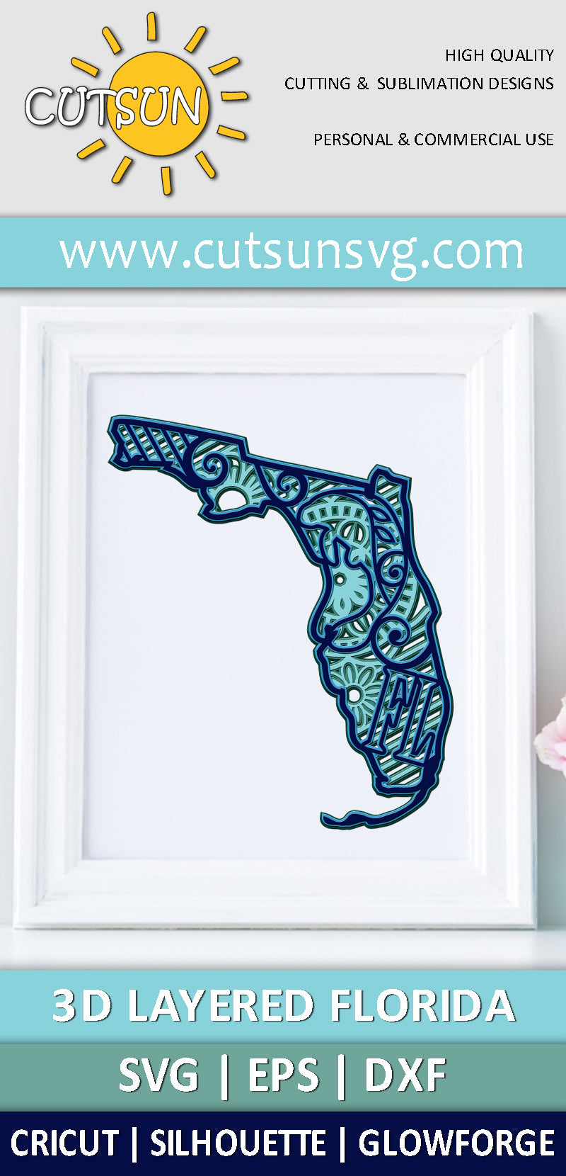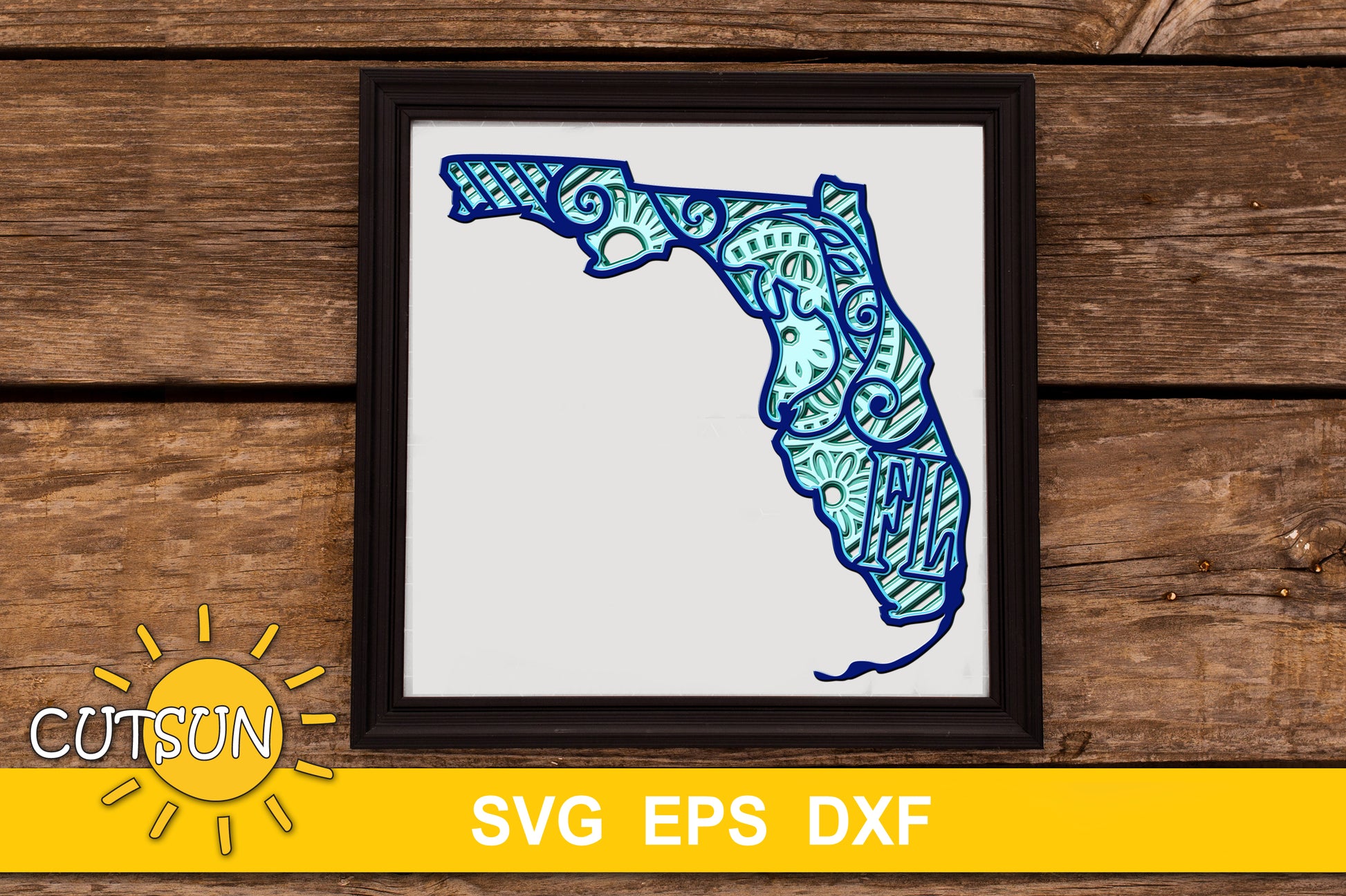 3D Layered Florida State Mandala cut file for crafters 5 layers. The multilayered design is featuring Florida state's outline and one if its symbols: the Manatee.