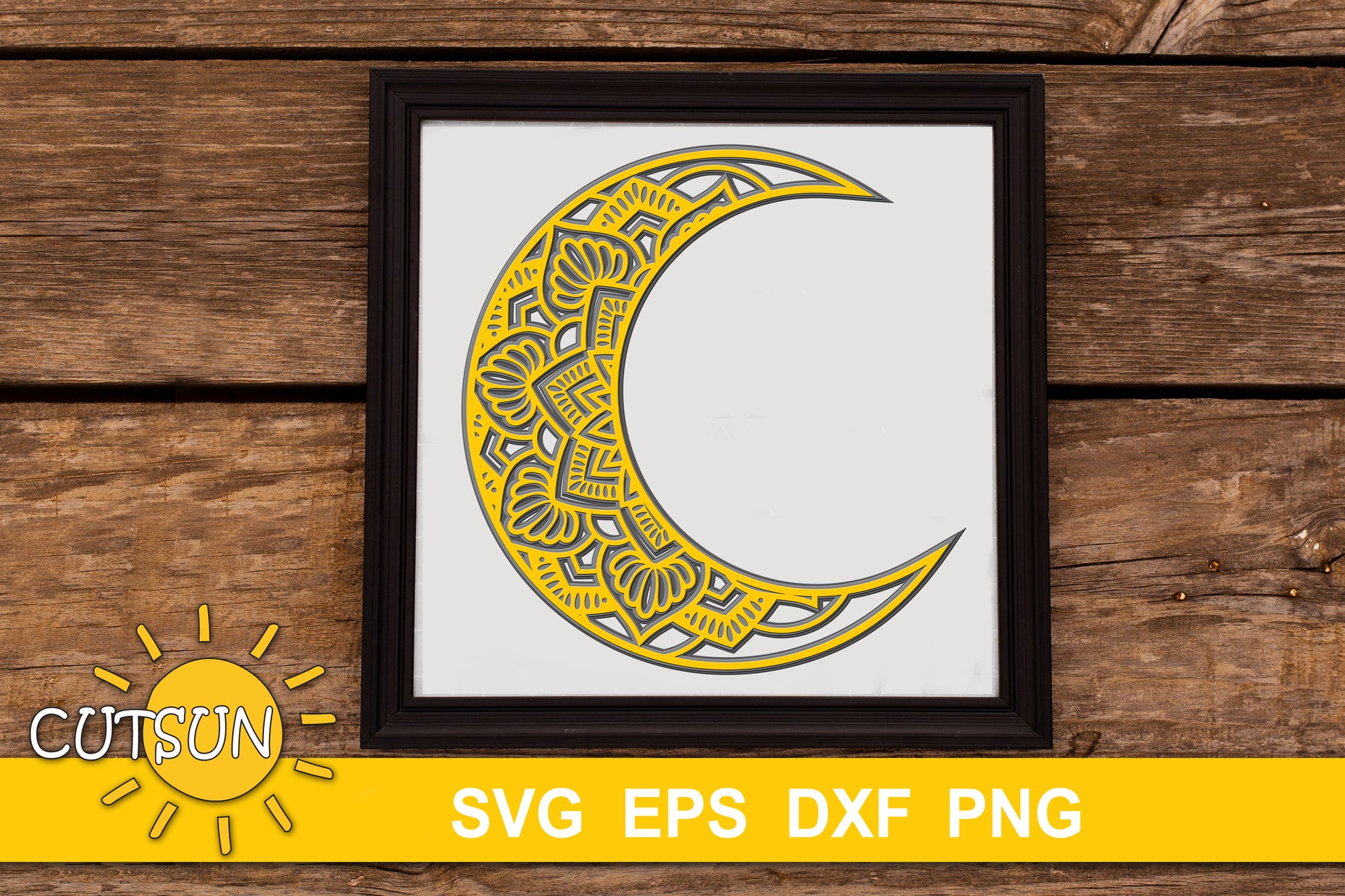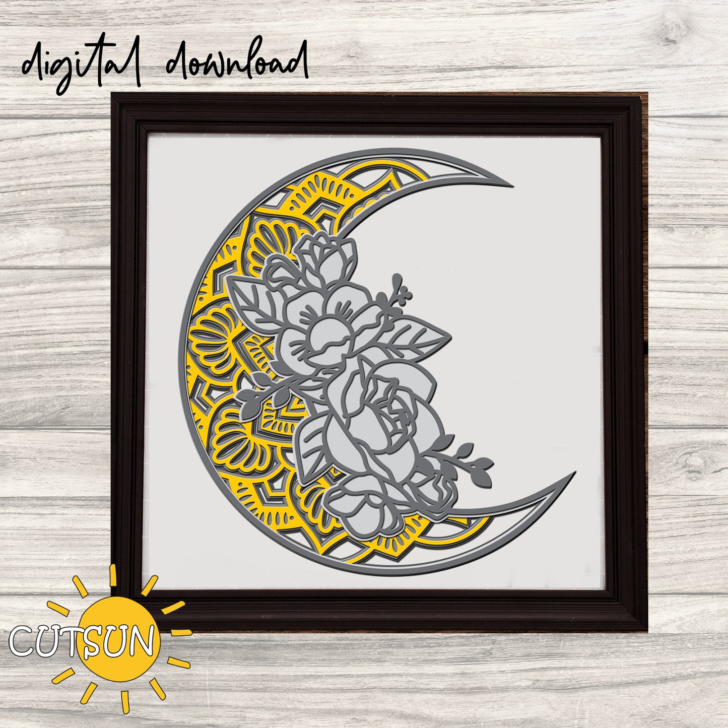3D Layered Moon Mandala SVG | Floral mandala Moon 3D layered