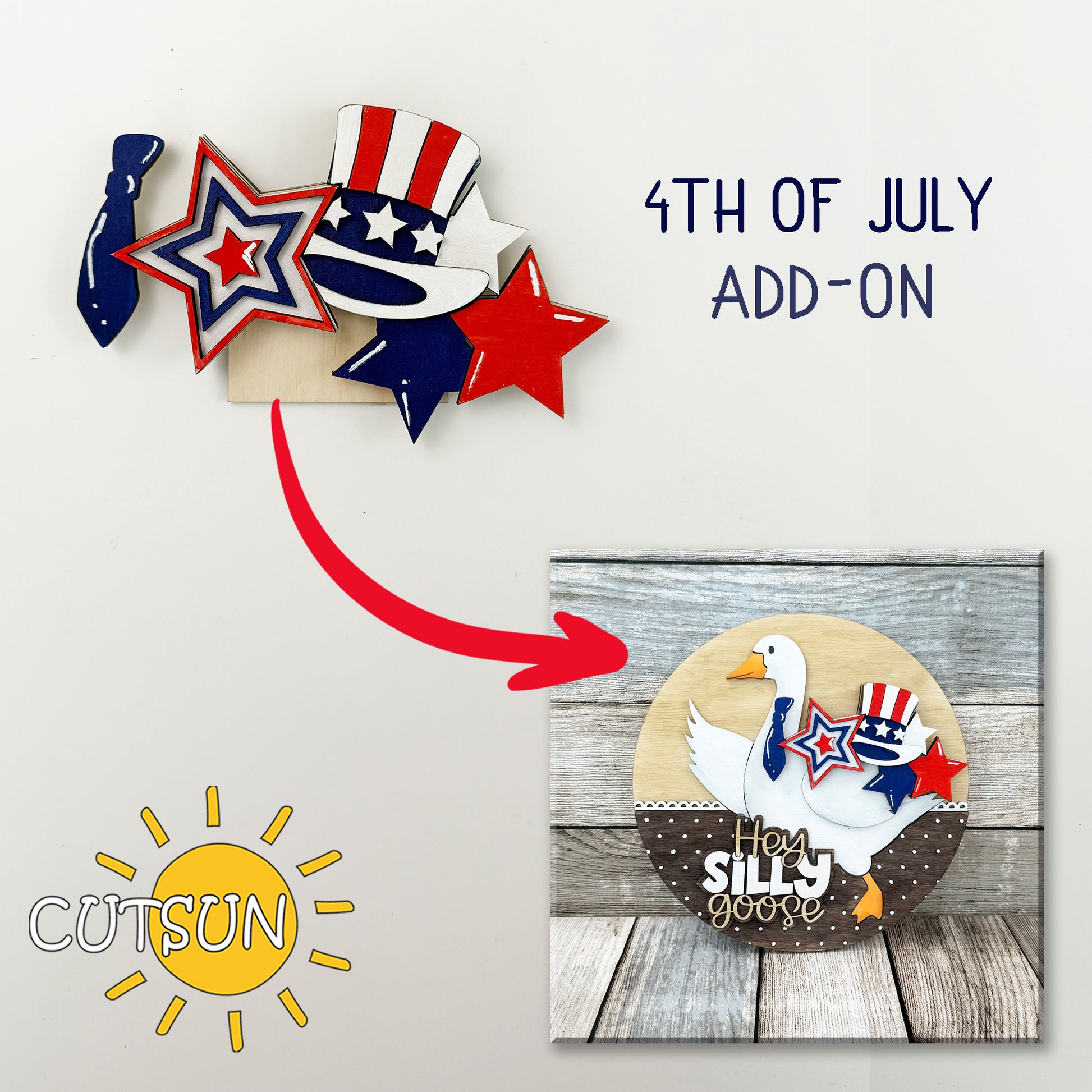 4th of July Add-On for Interchangeable Goose Door Hanger | Patriotic Laser Cut File