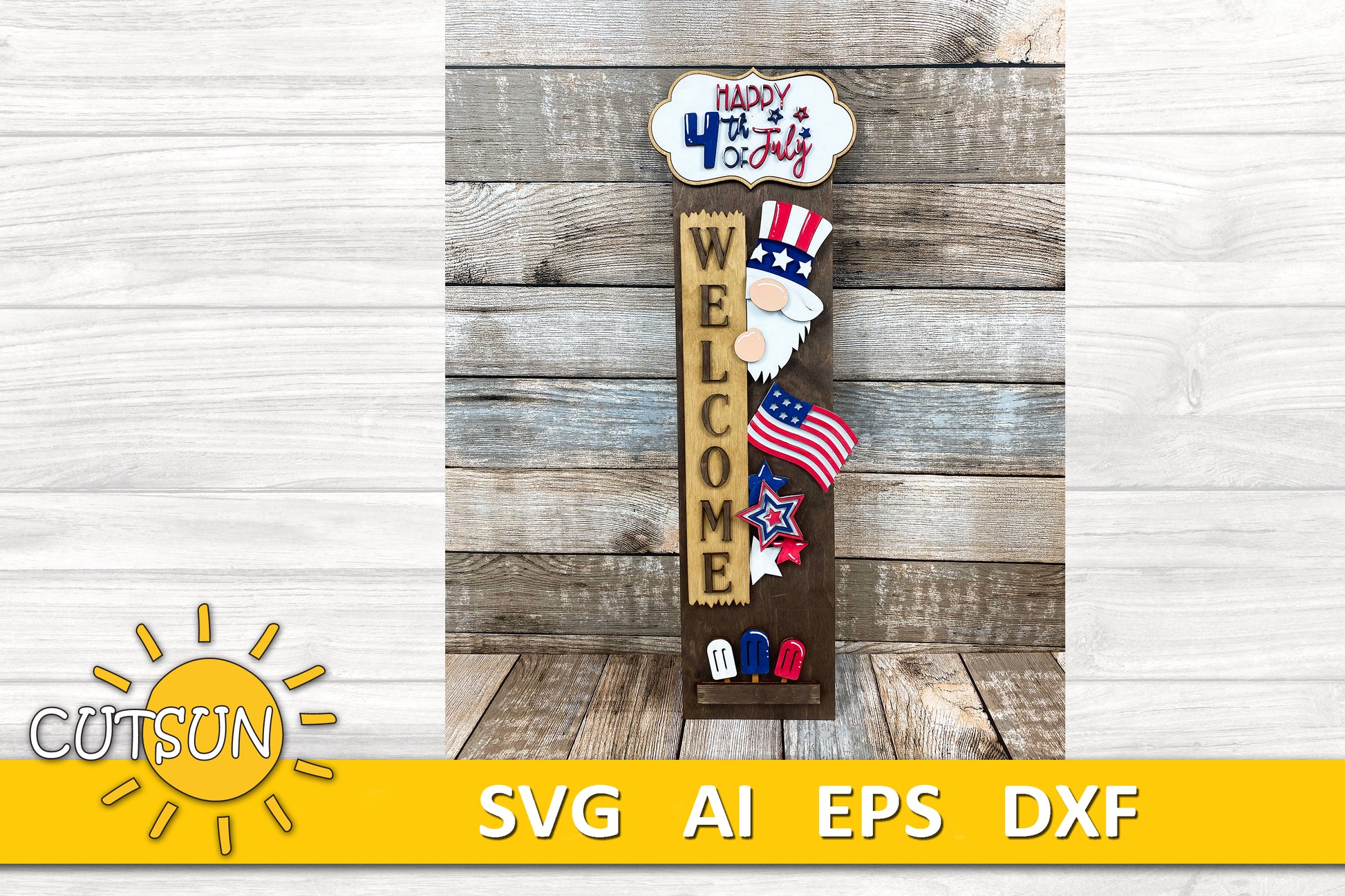 4th of July Porch Sign SVG | Patriotic Interchangeable Vertical Leaner | Welcome Sign Laser Cut File | Independence Day svg