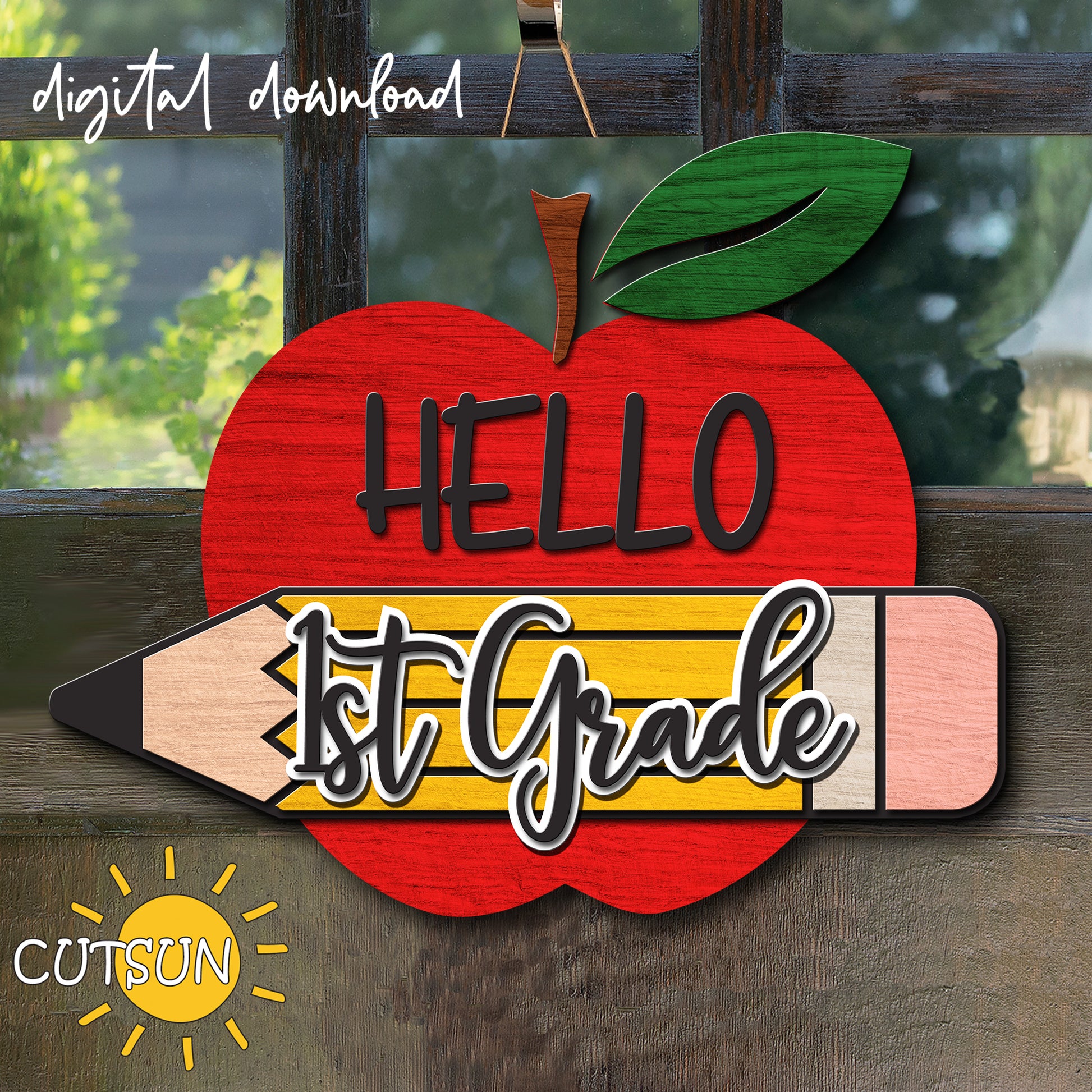 Back to School Apple Sign SVG | Classroom Decor SVG | Hello 1st, 2nd, 3rd Grade sign