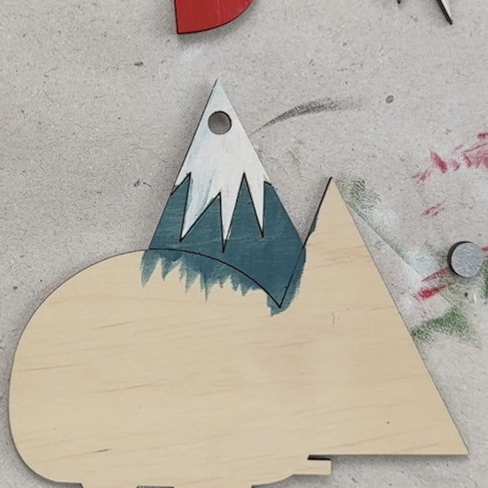 Camper Ornament SVG | Layered Retro Camper and Mountain Scene Laser Cut File