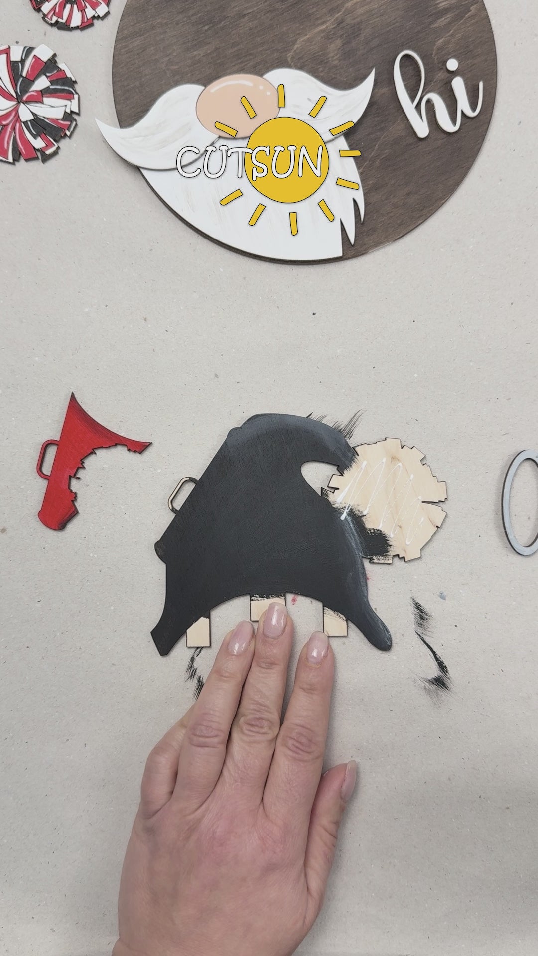 Cheerleader Gnome Door Hanger SVG – Interchangeable Laser Cut Welcome Sign