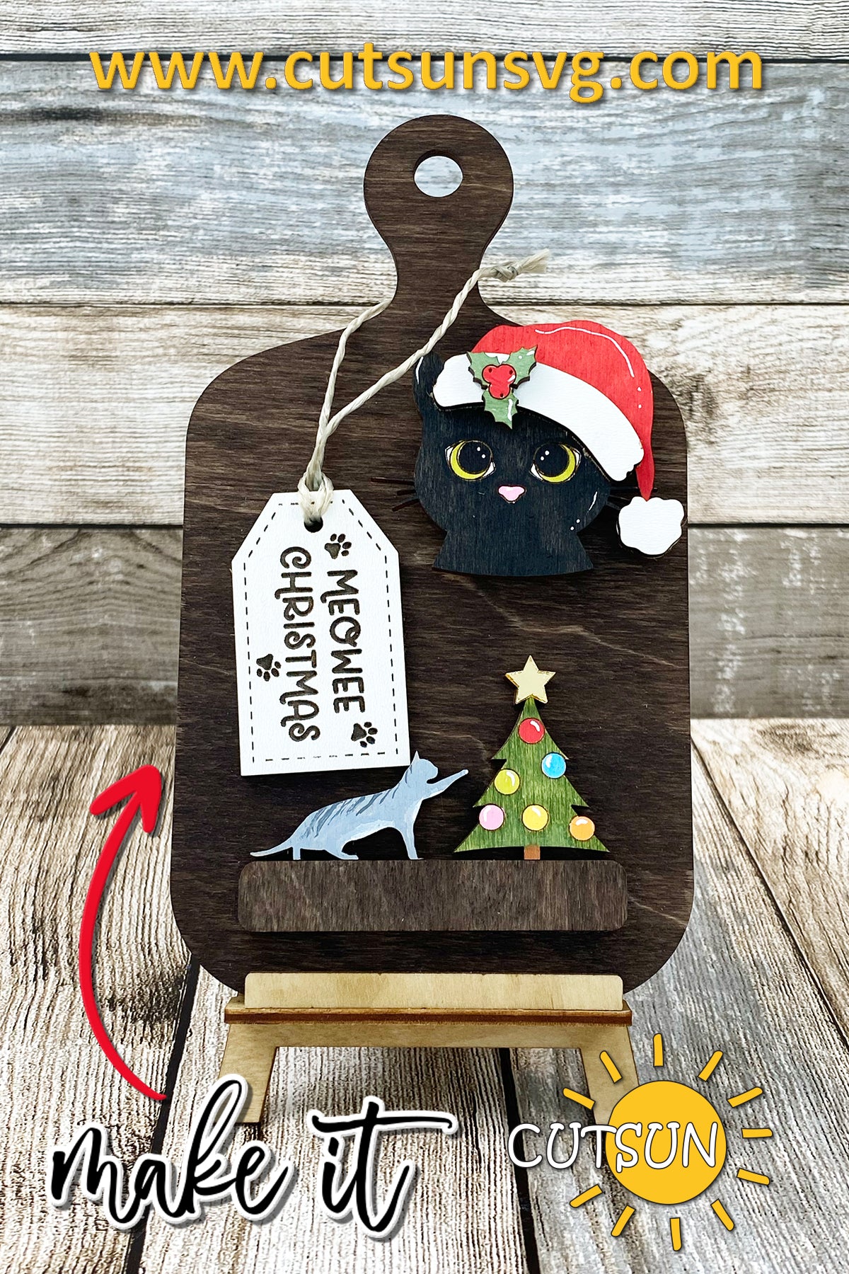 Christmas Cat Interchangeable Cutting Board Decor SVG | Cat Owner Christmas Shelf Decor | Laser Cut File