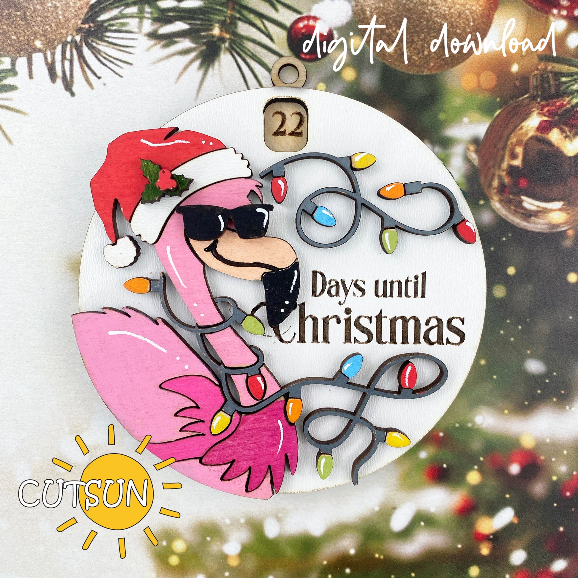 Christmas Countdown SVG | Flamingo Days Until Christmas Sign | Countdown to Christmas Laser Cut File