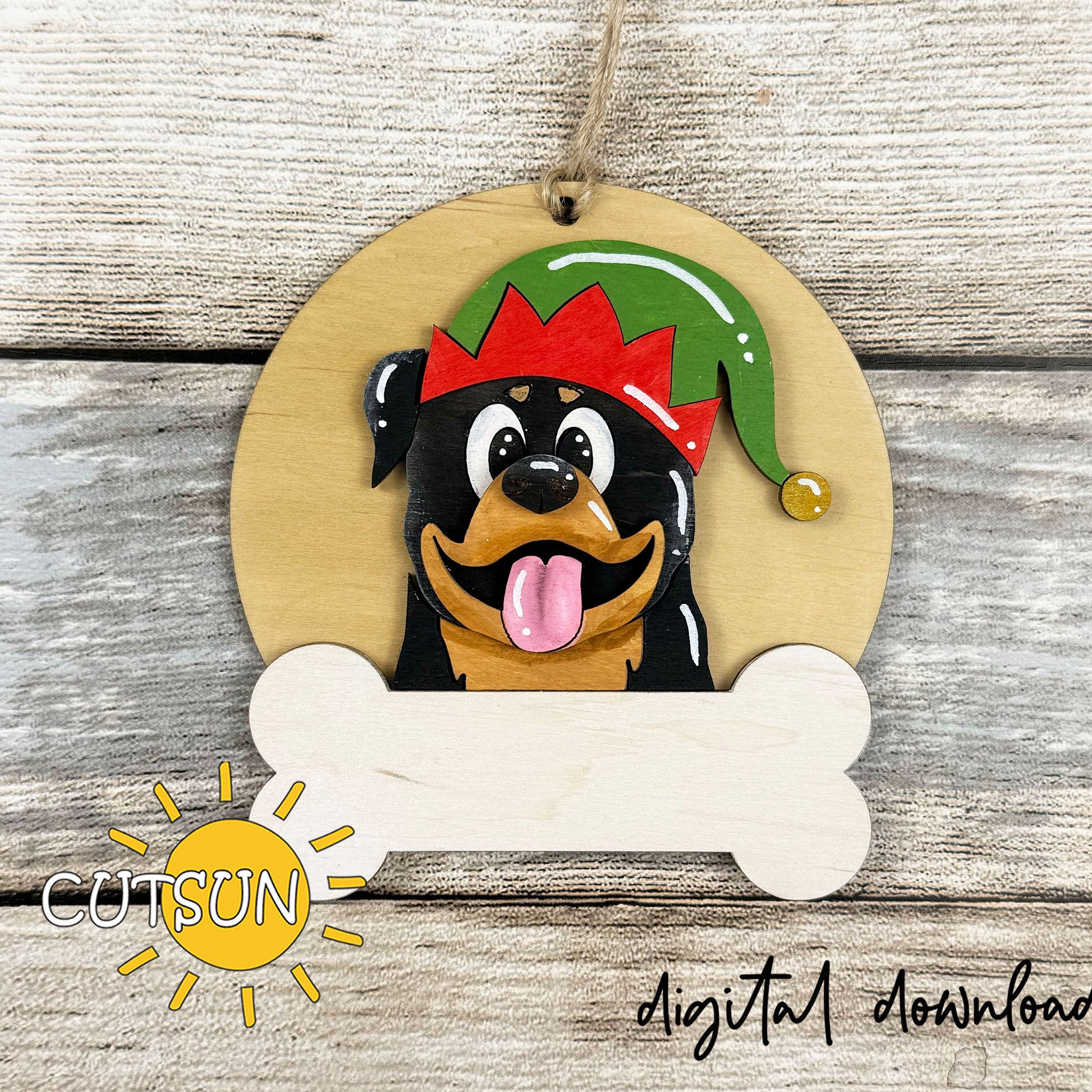 Rottweiler Christmas Ornament Bundle | Laser Cut Dog Bone Ornaments | Personalized Pet Holiday Decor Digital File