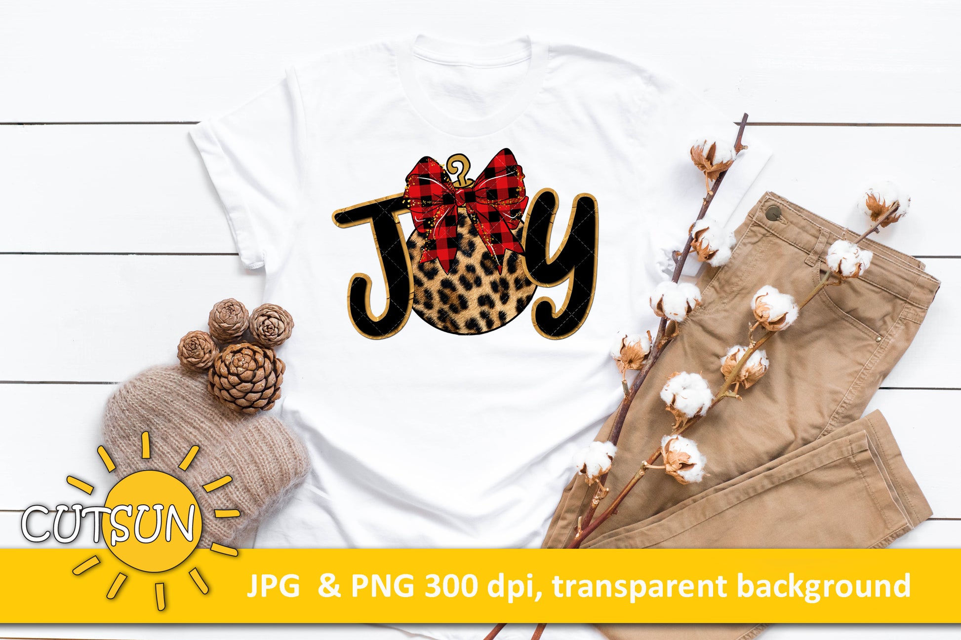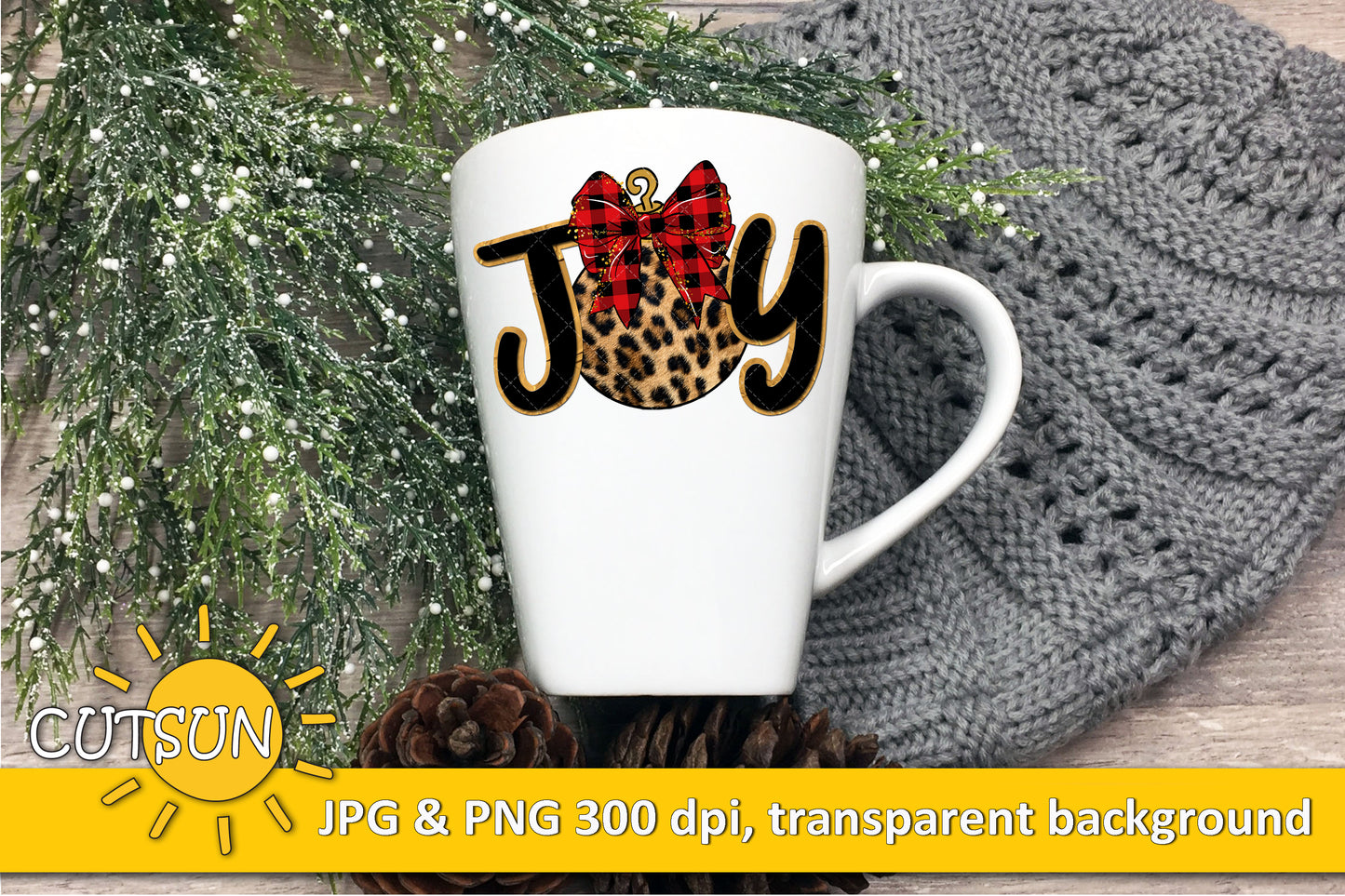 Christmas sublimation design download - Joy in Buffalo plaid and Leopard