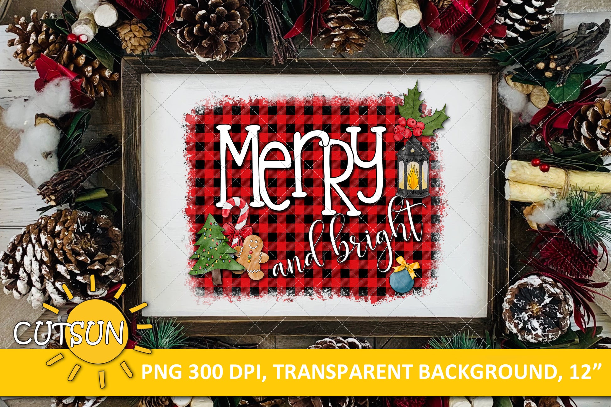 Christmas sublimation design Merry And Bright Buffalo plaid