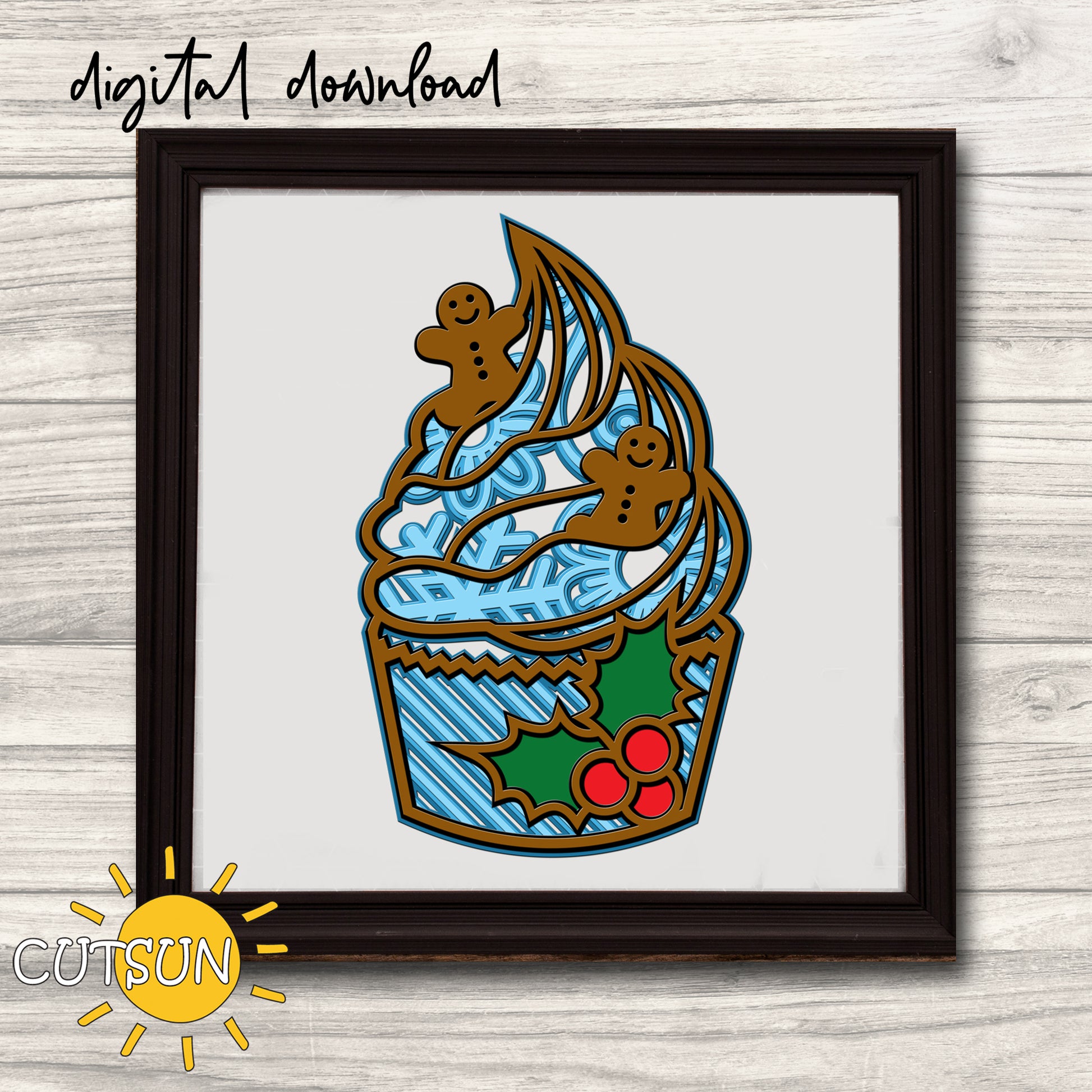 Layered Cupcake Gingerbread cookies | Christmas Cupcake 3D layered SVG