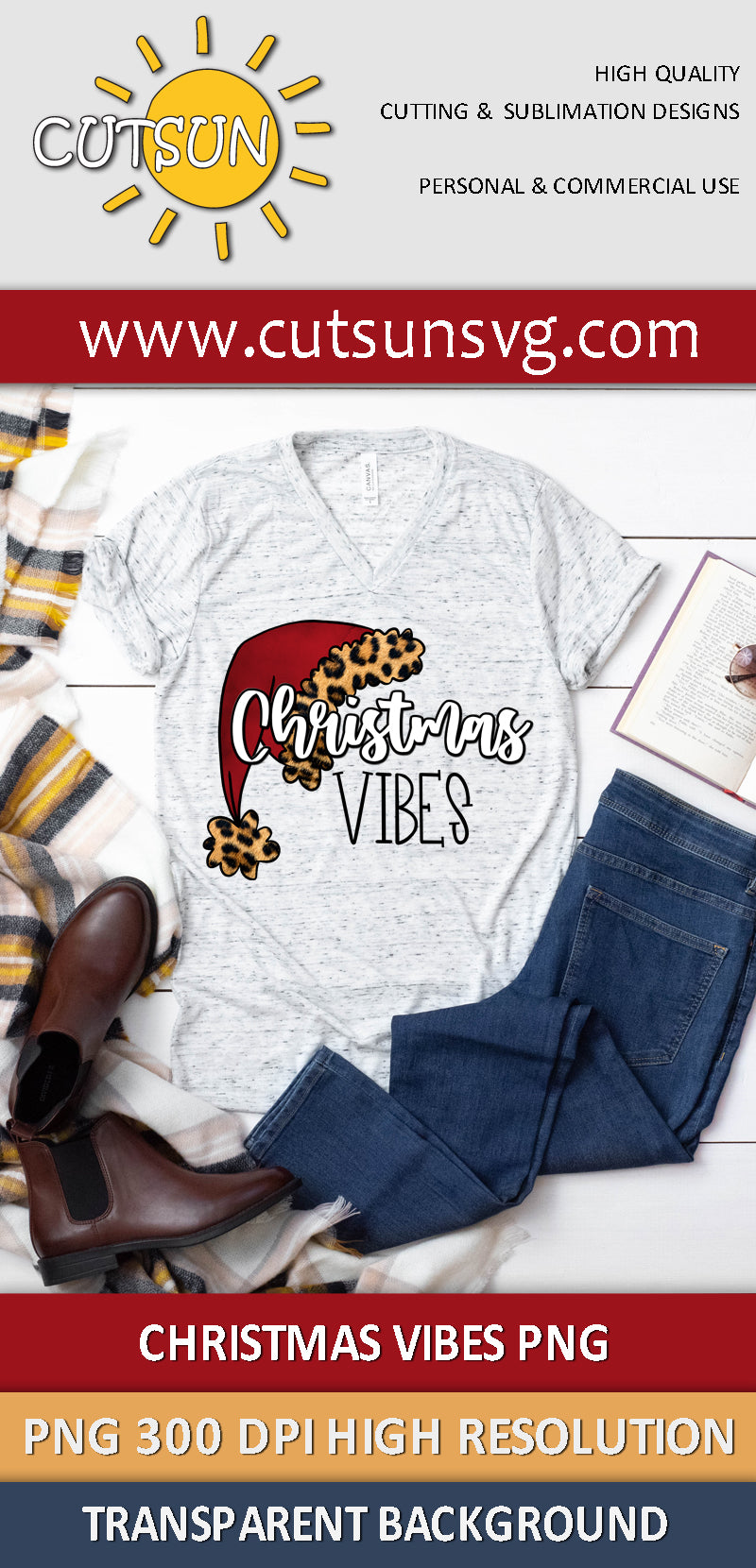 Christmas Vibes Sublimation design download - Santa hat with Leopard details