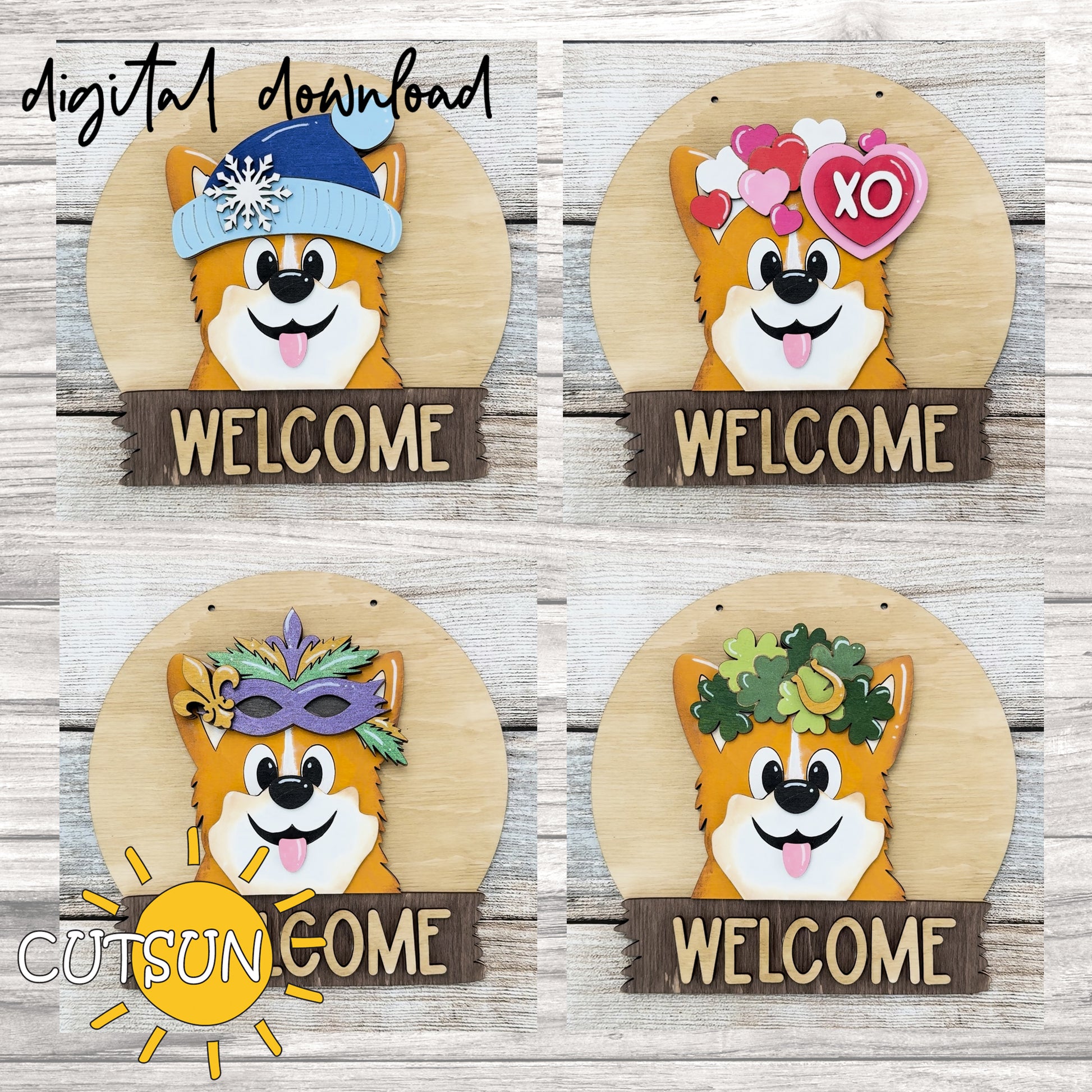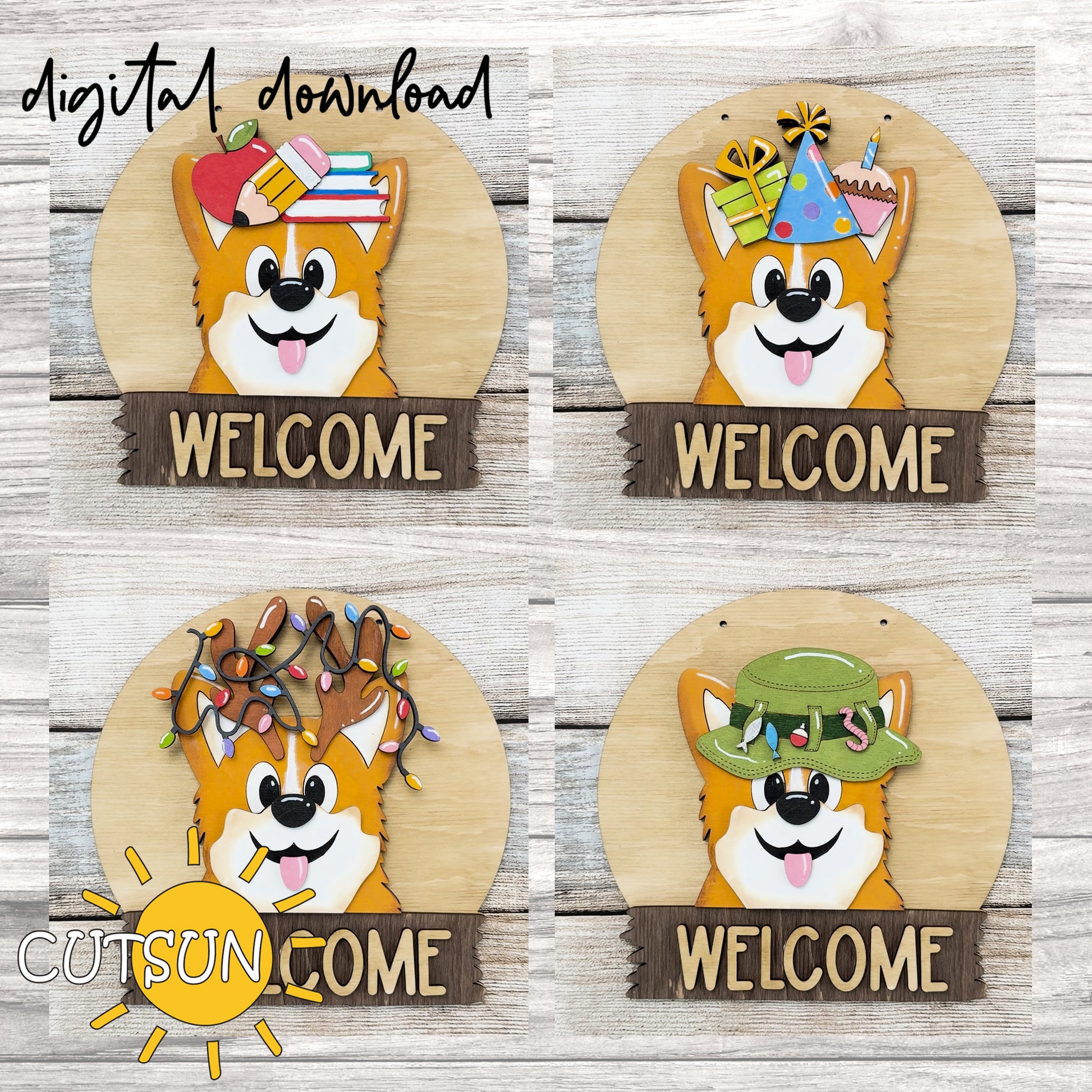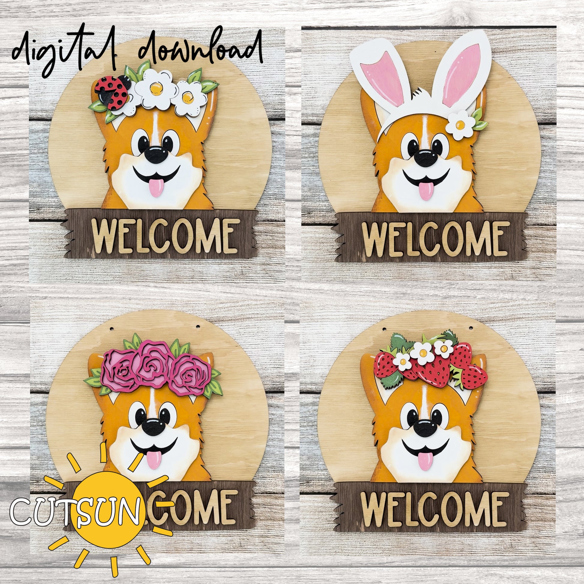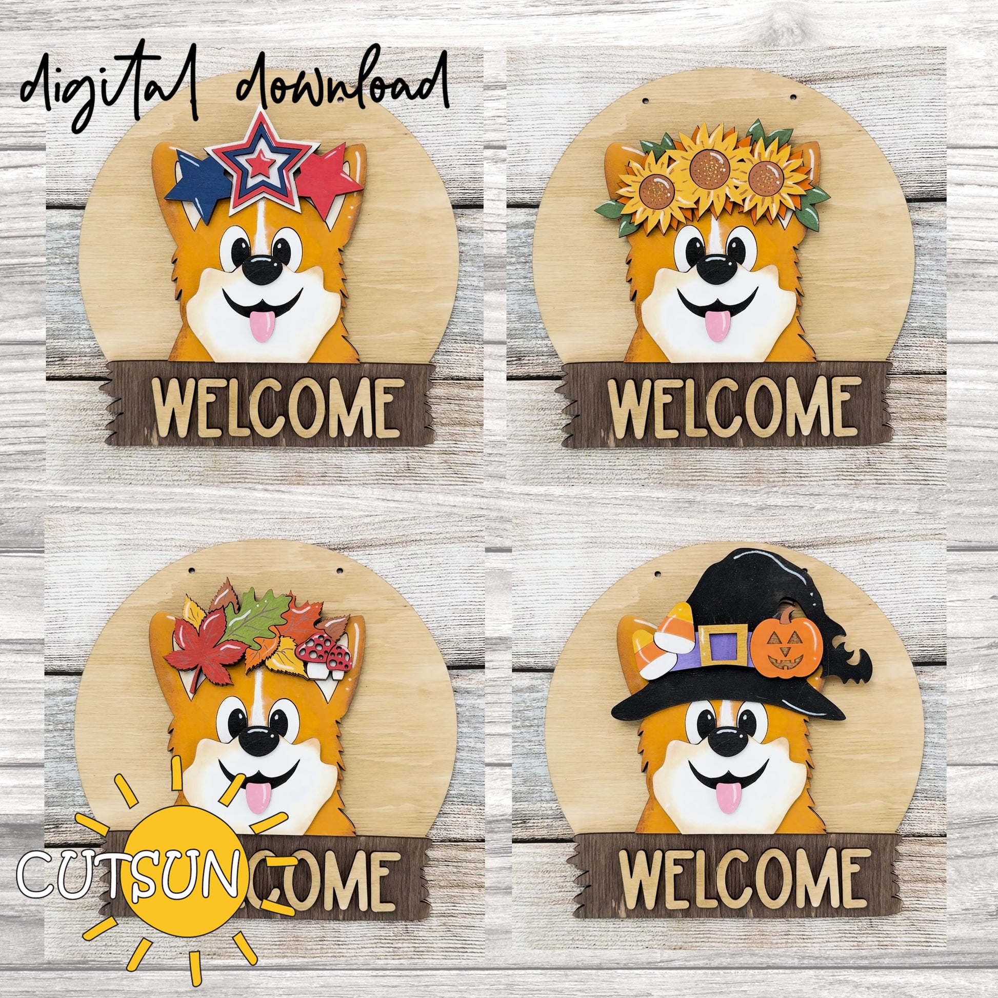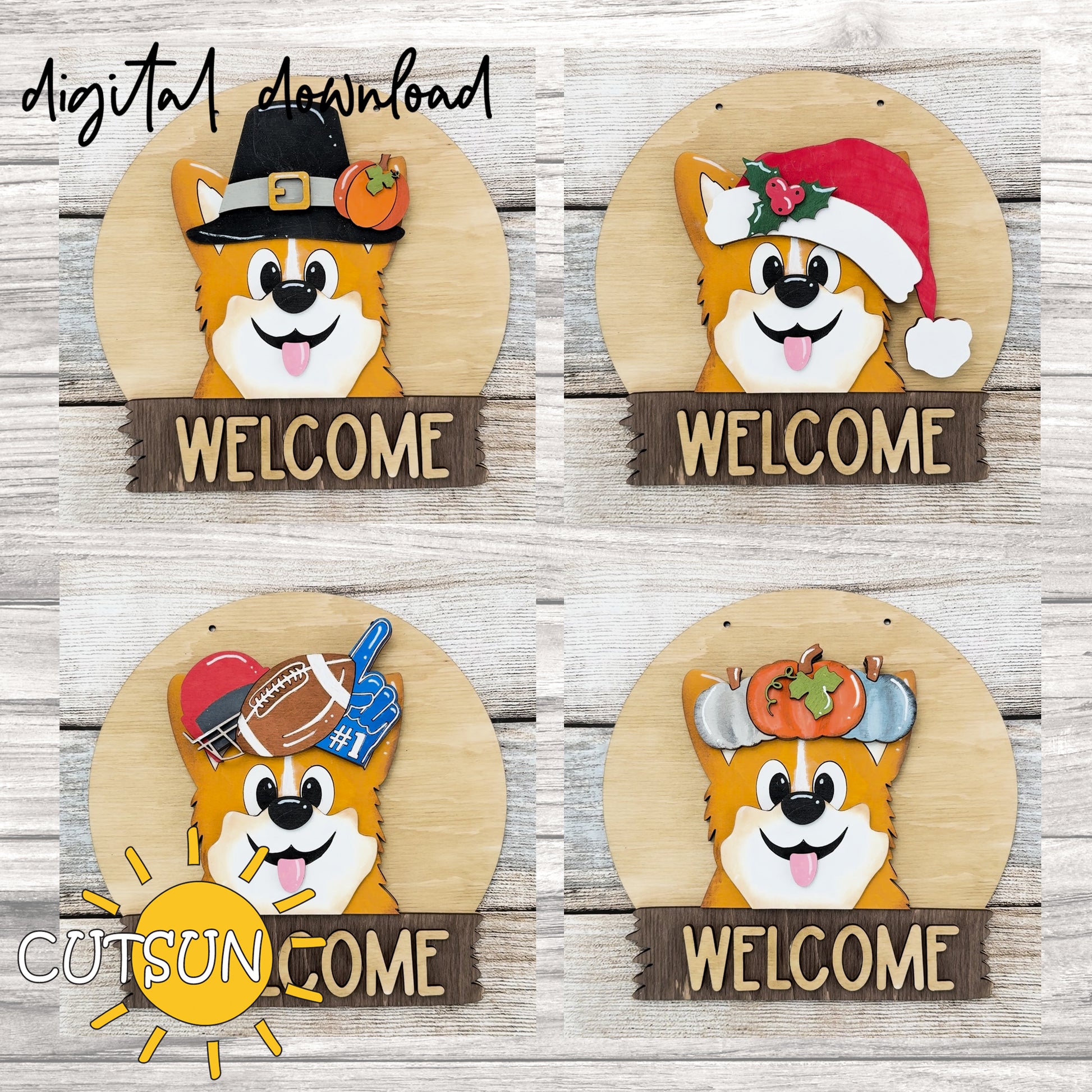 Introducing our Corgi door hanger SVG - an interchangeable round sign that can be used with or without the seasonal add-ons! Please check the preview images of this welcome sign svg and contact me if you need more information.