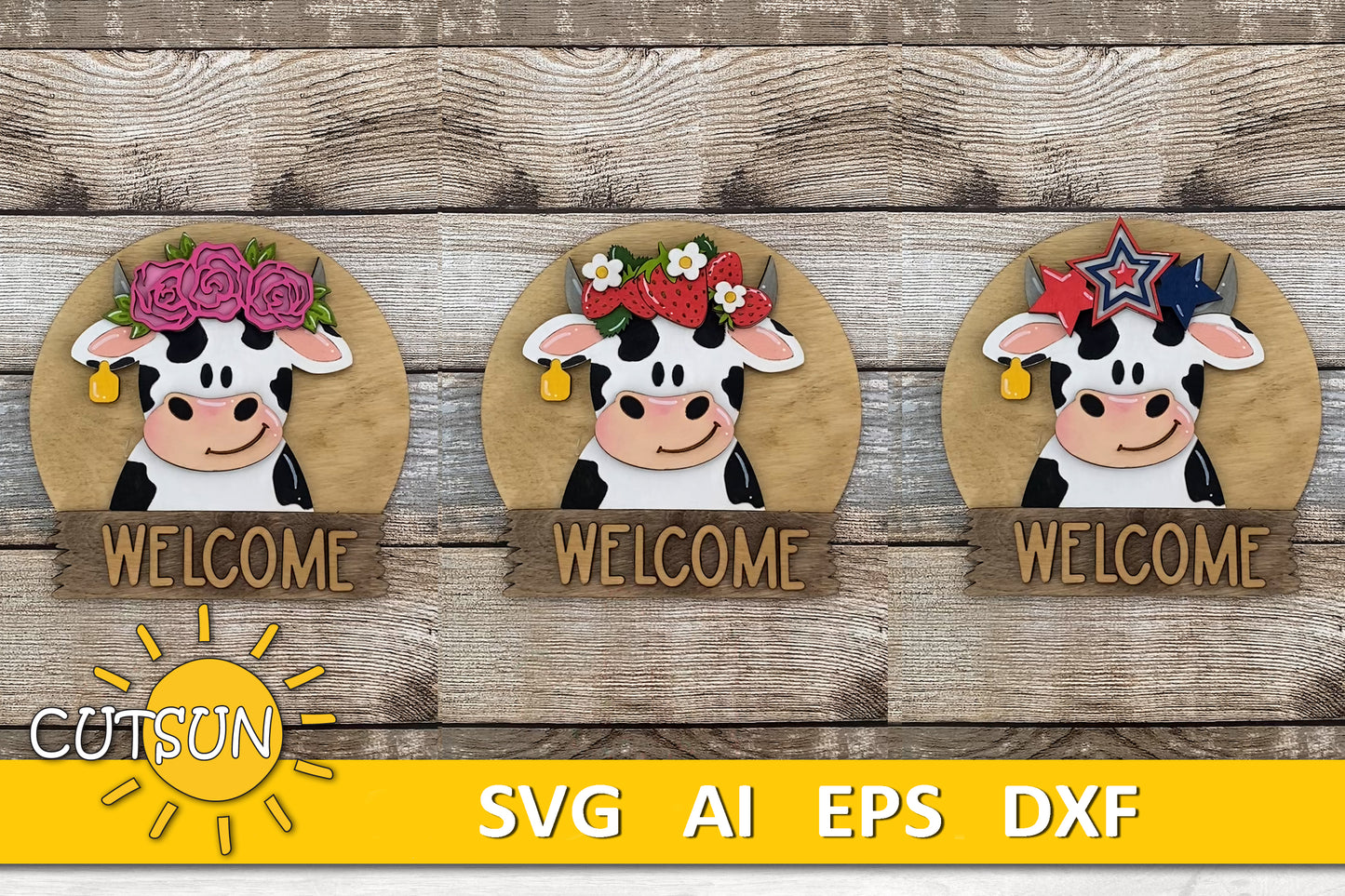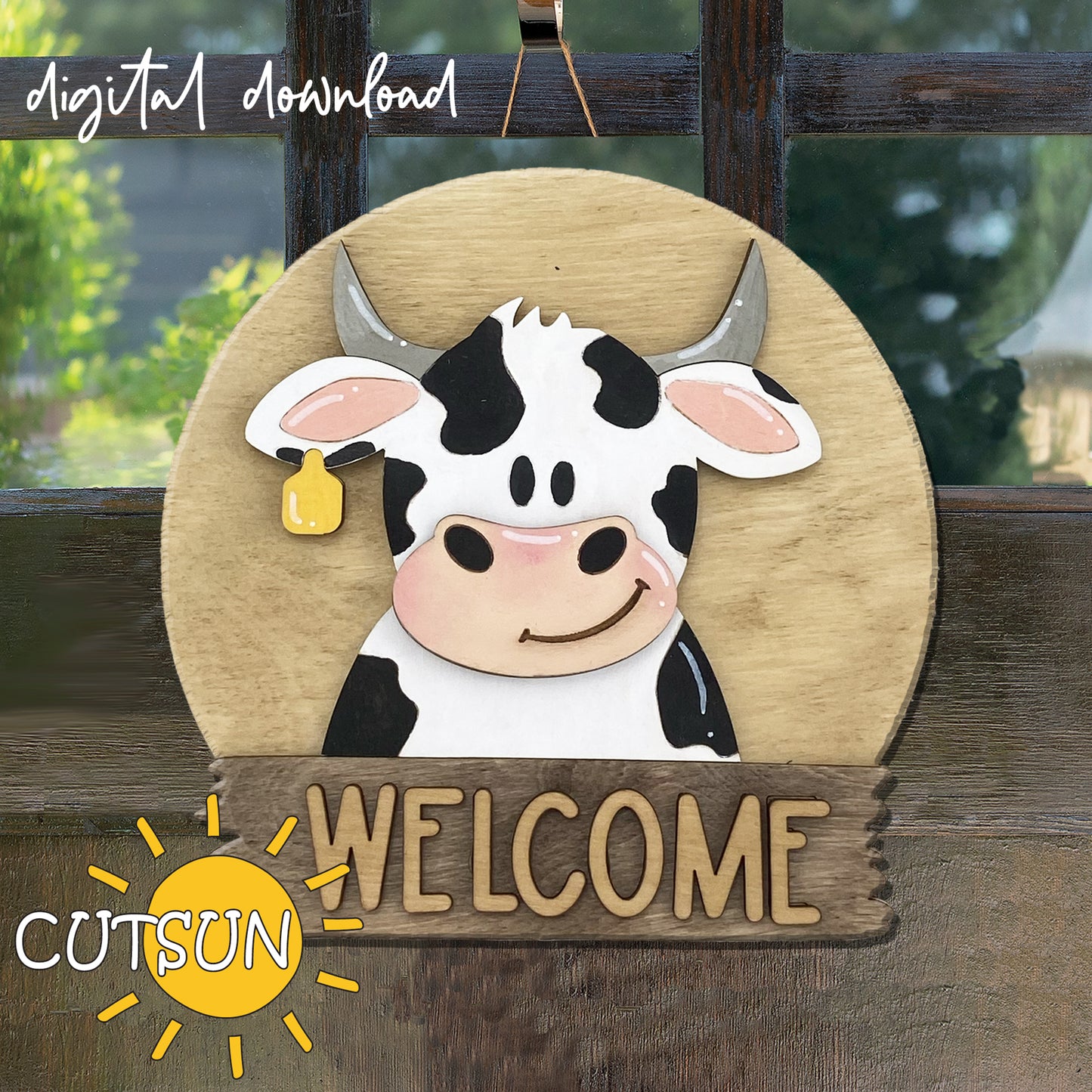 Introducing our Cow door hanger SVG - an interchangeable round sign that can be used with or without the seasonal add-ons! Please check the preview images of this welcome sign svg and contact me if you need more information.