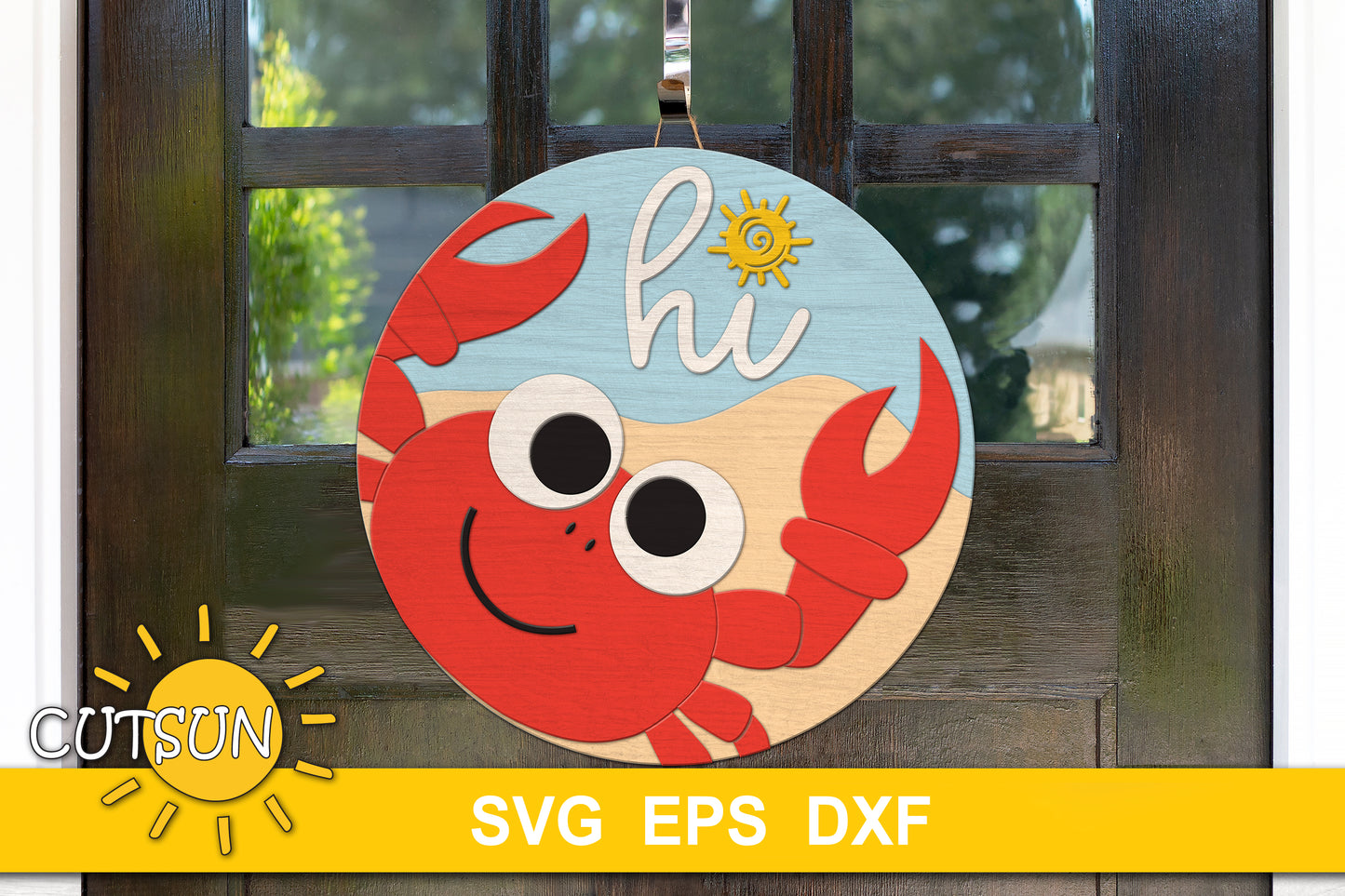 🦀 Say "hi" in a unique and adorable way with our summer door hanger SVG design! 🚪