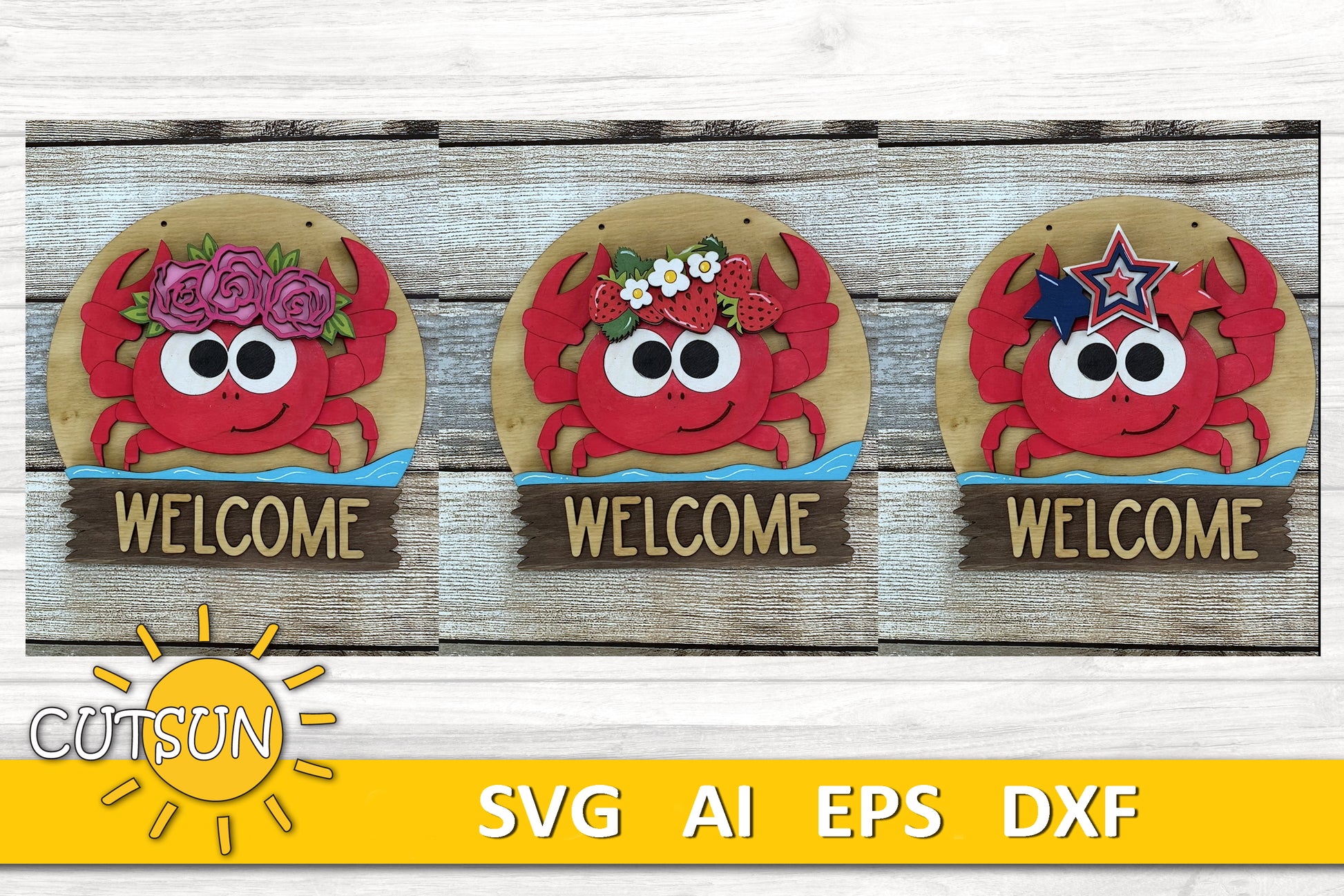 Introducing our Crab door hanger SVG - an interchangeable round sign that can be used with or without the seasonal add-ons! Please check the preview images of this welcome sign svg and contact me if you need more information.