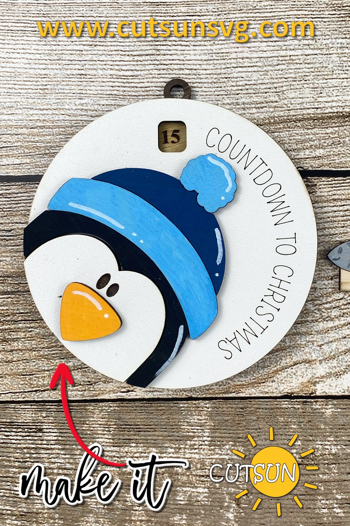 Christmas Countdown Ornament SVG | Cute Penguin Days Until Christmas Sign | Laser Cut File for Holiday Decor