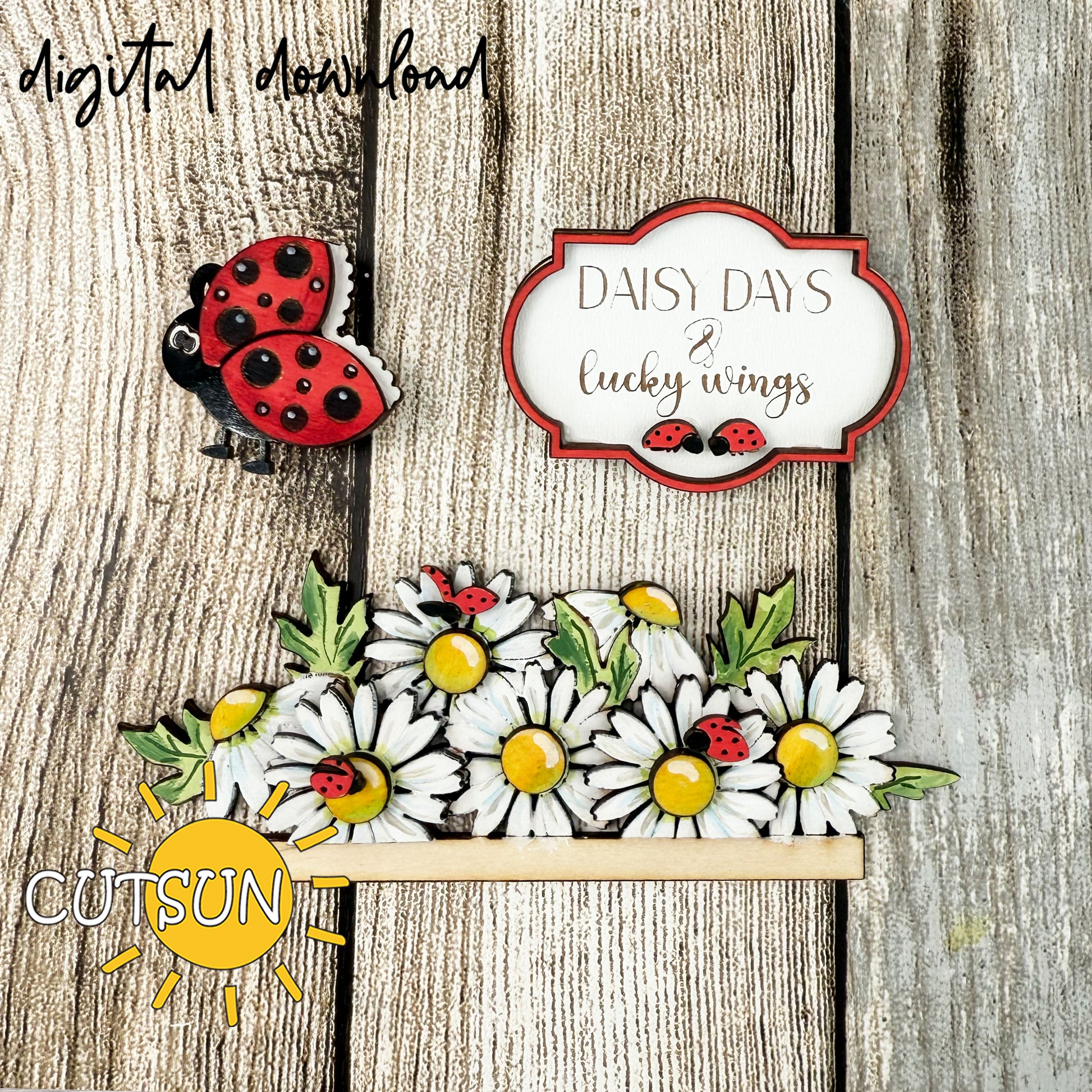 Daisies and Ladybugs SVG Add-On for Interchangeable Apron Shelf Sitter | Summer Laser Cut File