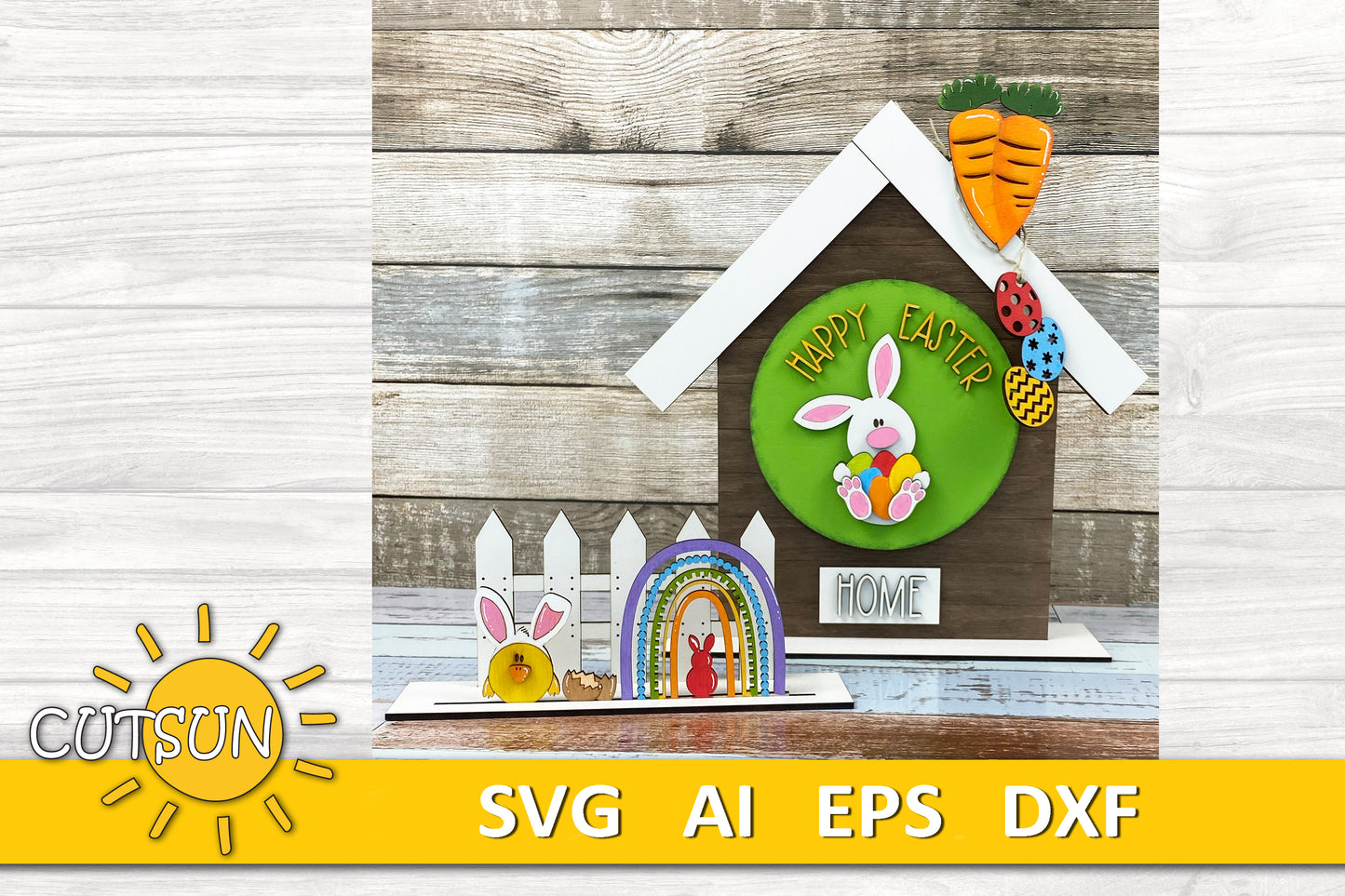 Easter Add-On SVG for Interchangeable Shelf Decor | House & Fence Set SVG | Happy Easter Bunny Laser Cut File