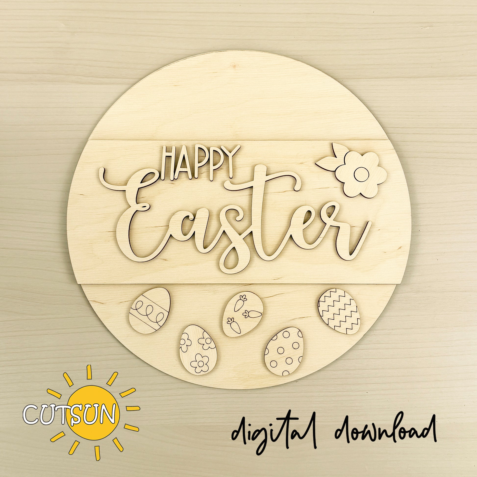 Happy Easter Door Hanger SVG | Layered Round Easter Sign | Laser Cut File for Spring Decor | Digital Download