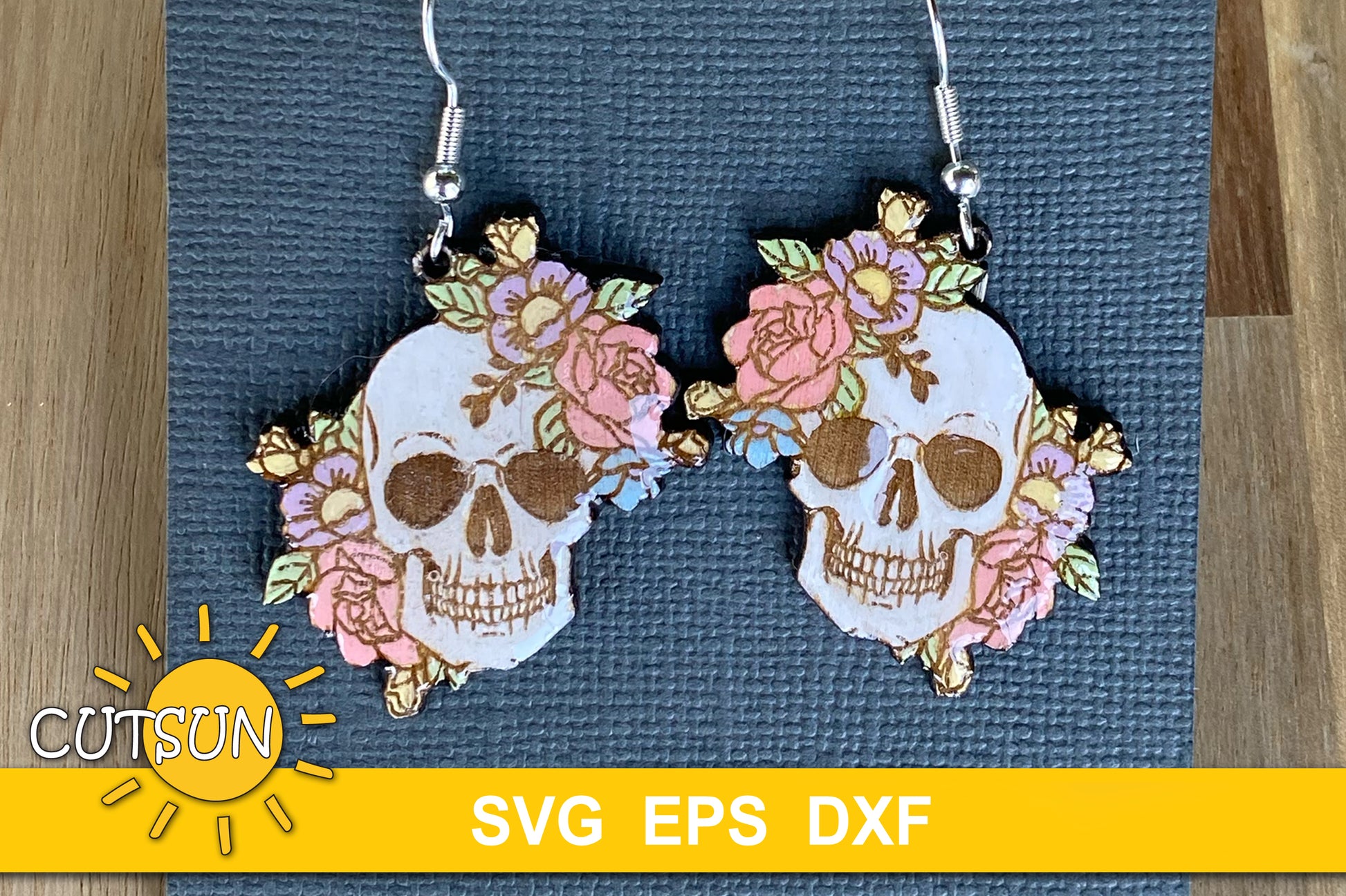 Floral skull earrings SVGaFloral Skull Earrings SVG | Halloween Earrings Laser Cut File | Glowforge SVG