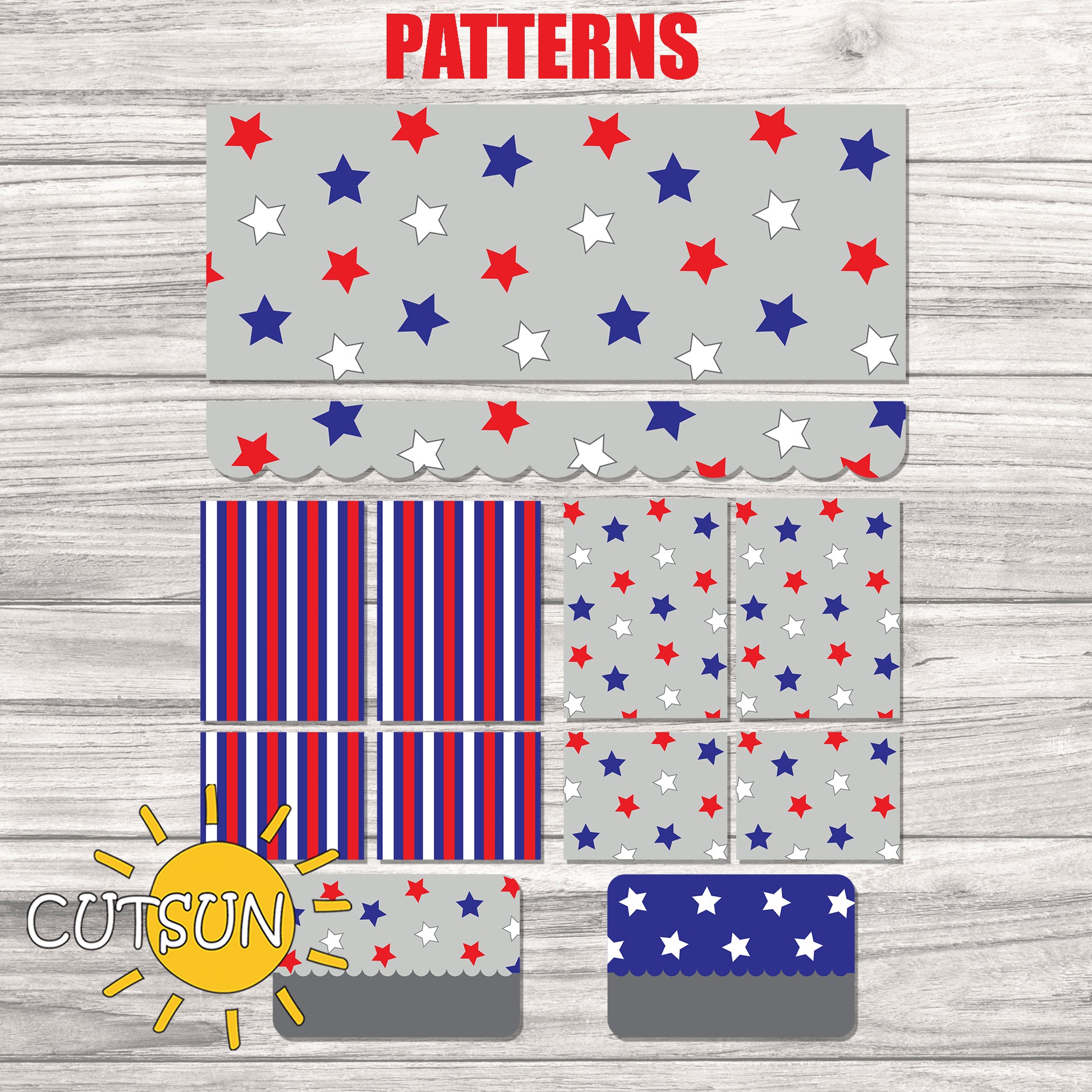 Packed with patriotic flair, this laser cut file is perfect for decorating your camper base (sold separately here) for Memorial Day, Independence Day, or any festive summer display.