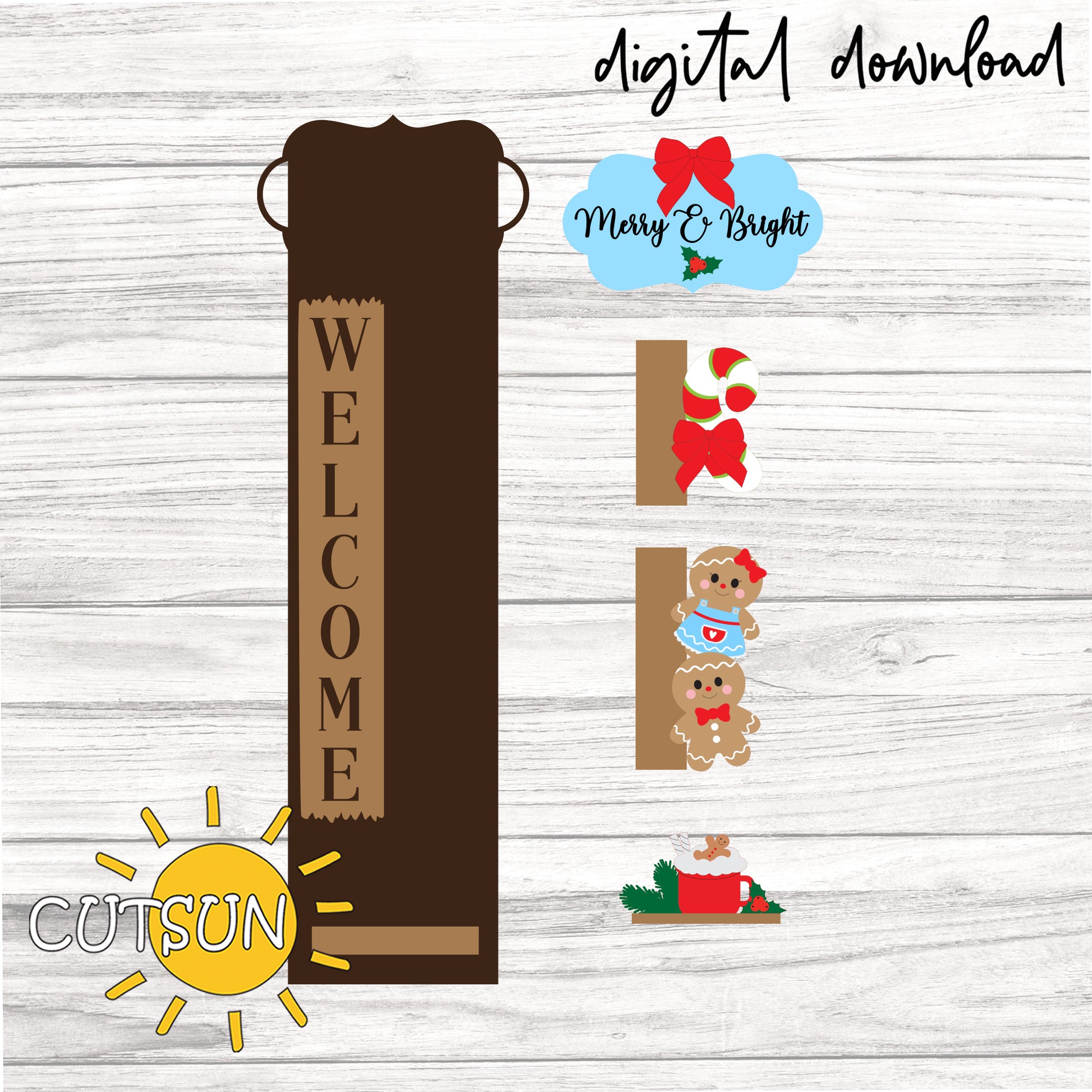 The design is made to complement the interchangeable vertical porch leaner base from the same collection, allowing you to update your seasonal porch décor with a cohesive and charming Christmas theme. Once assembled, the elements create a cheerful gingerbread-inspired look perfect for porches, entryways and holiday displays. This digital download includes SVG, DXF, AI and EPS formats, all optimized for smooth and precise laser cutting.