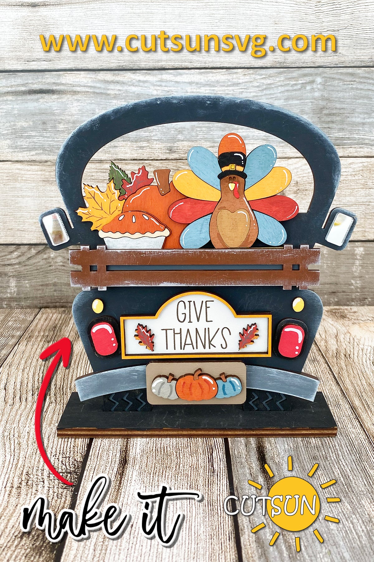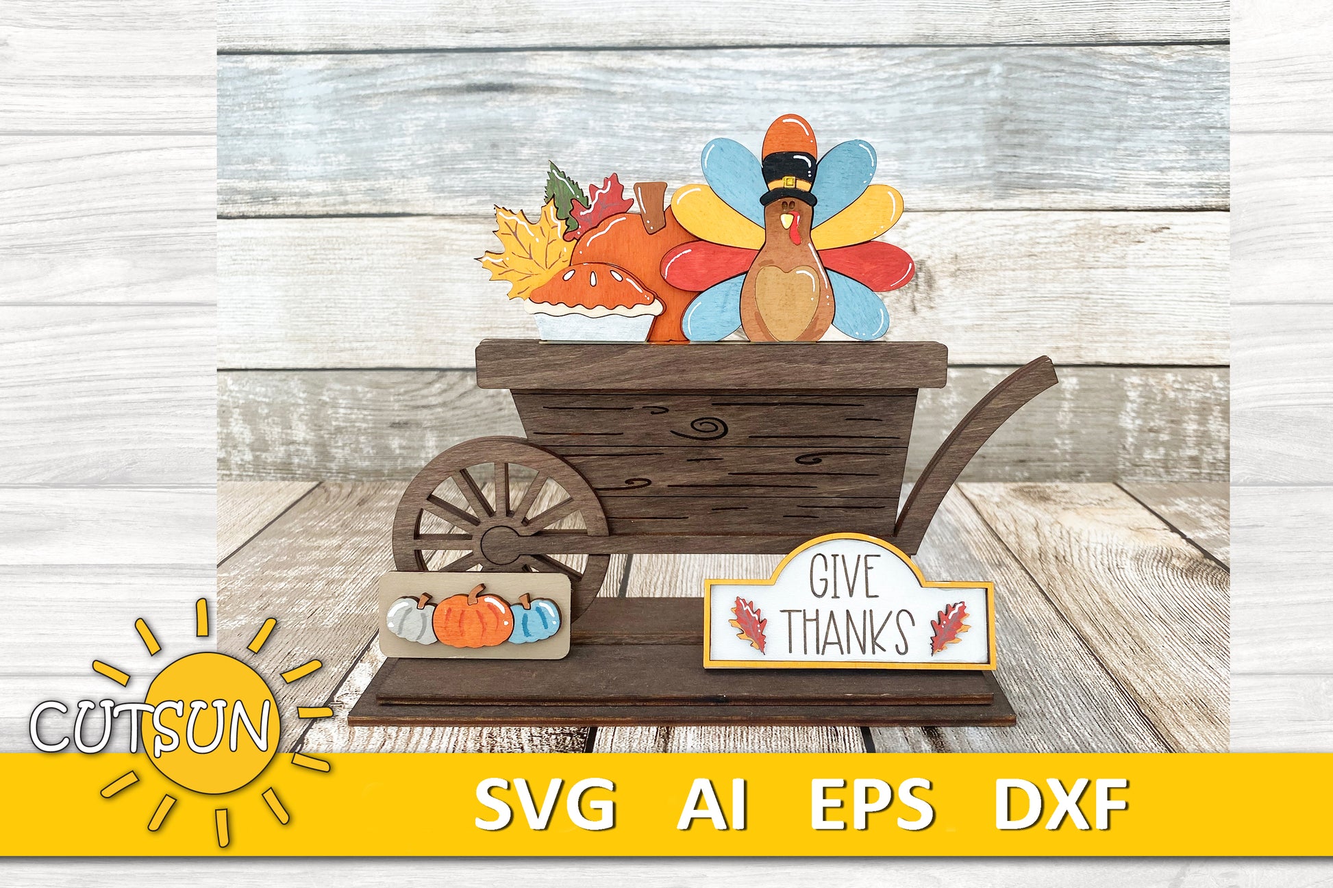Give Thanks SVG Add-On for Interchangeable Farmhouse Truck or Garden Wheelbarrow | Thanksgiving Turkey Laser Cut File