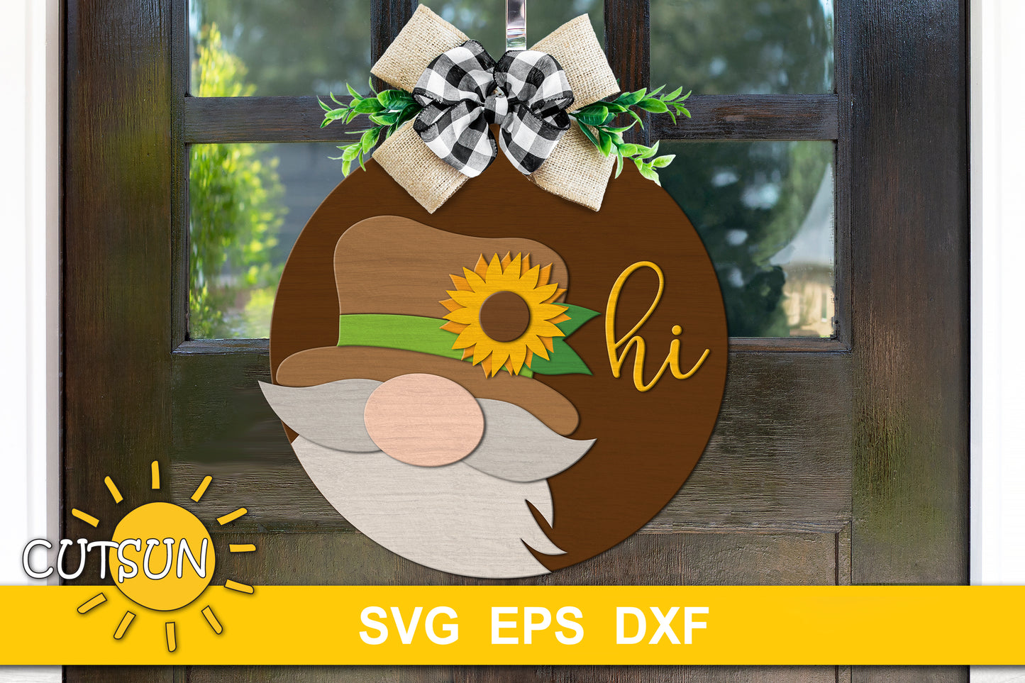Gnome with Sunflower door hanger SVG | Gnome hi door hanger SVG
