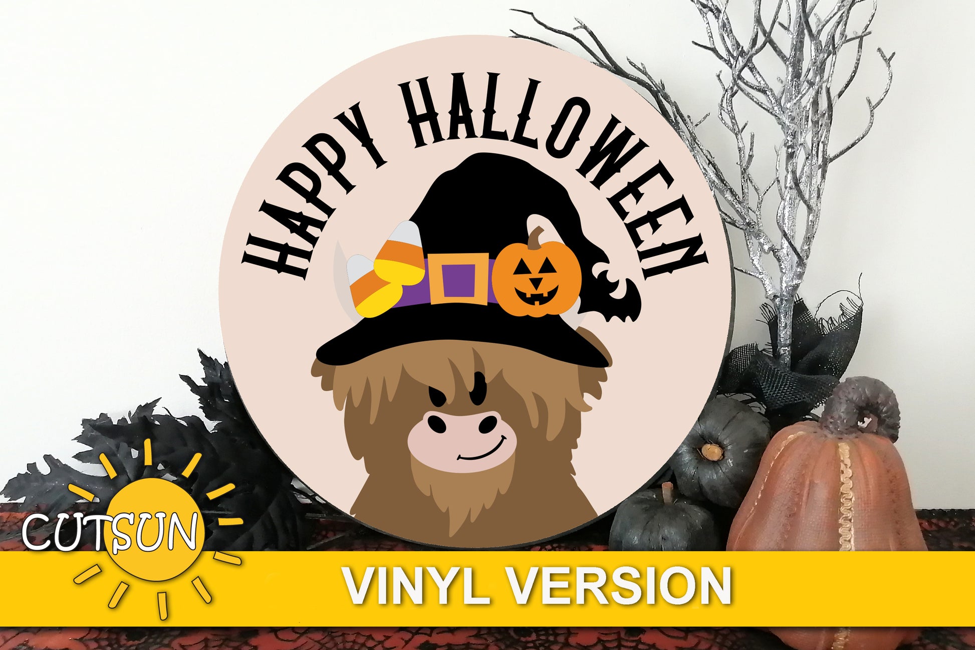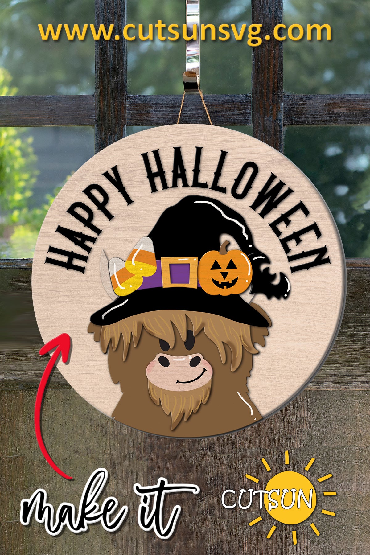 Halloween Door Hanger SVG | Highland Cow Halloween Door Sign | Laser Cut File