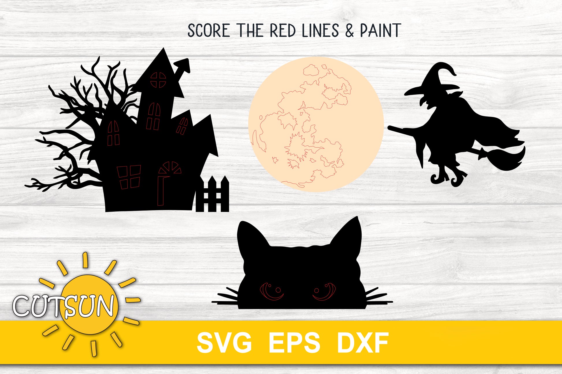 Halloween Tiered Tray SVG Set | Witch & Haunted House Tiered Tray Decor | Laser Cut File