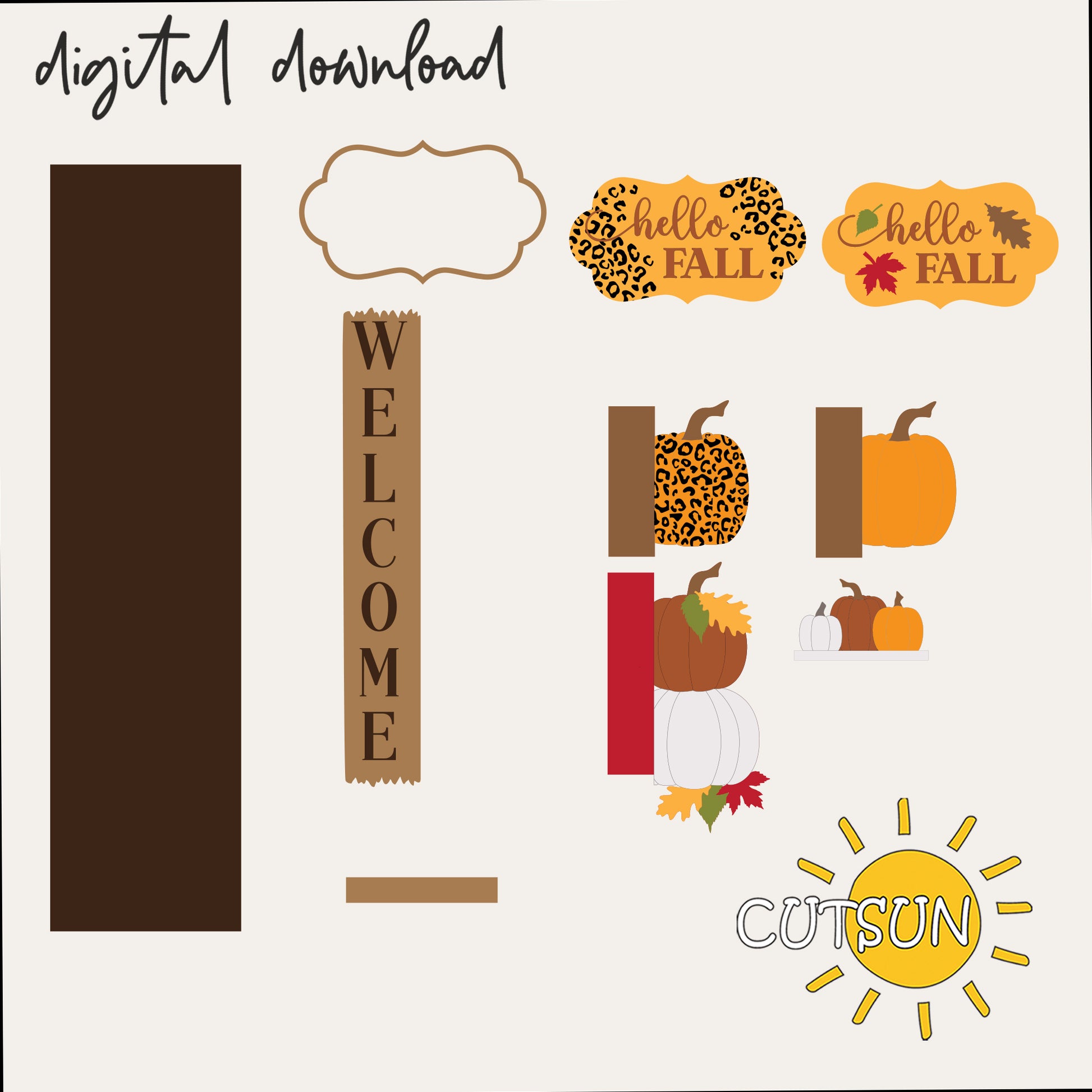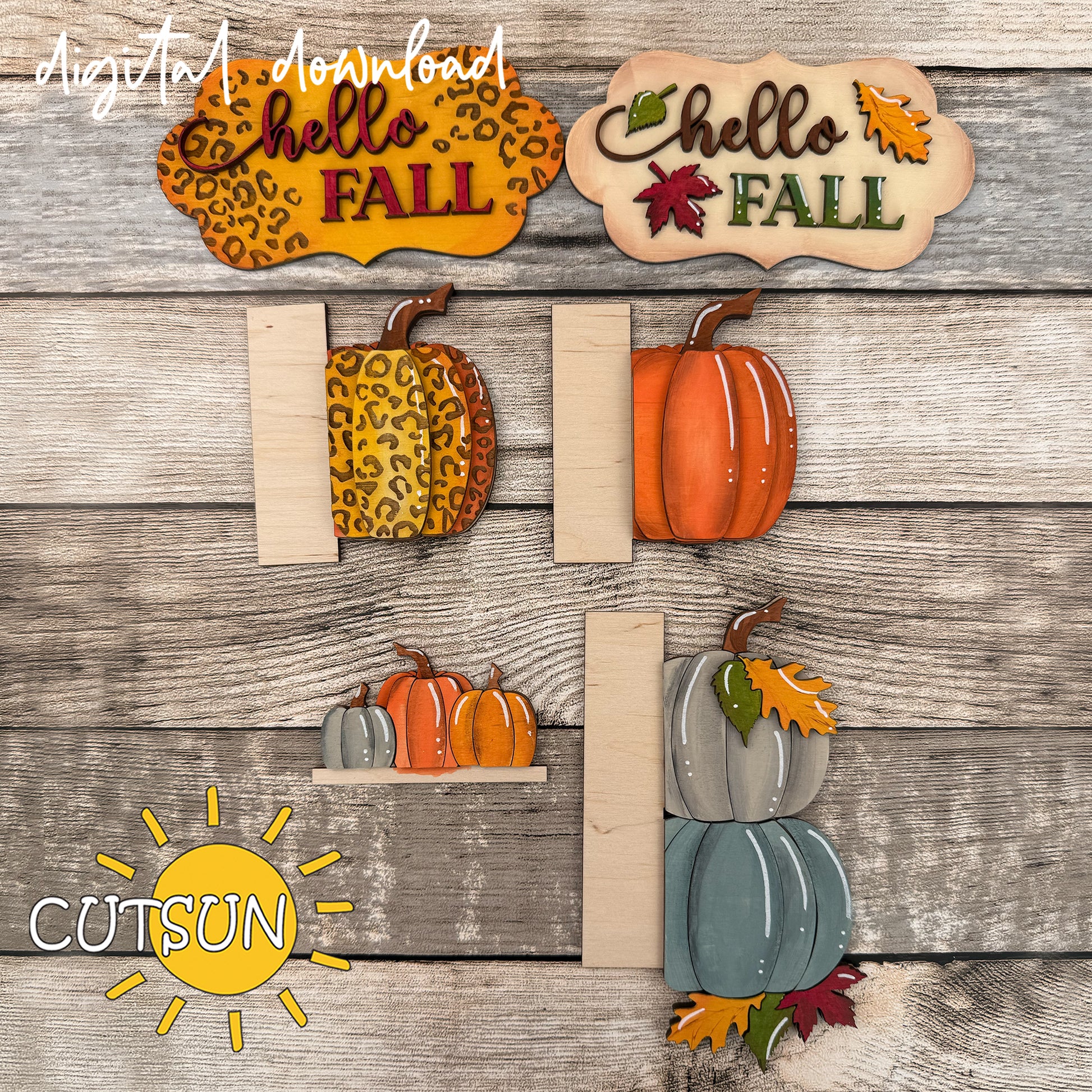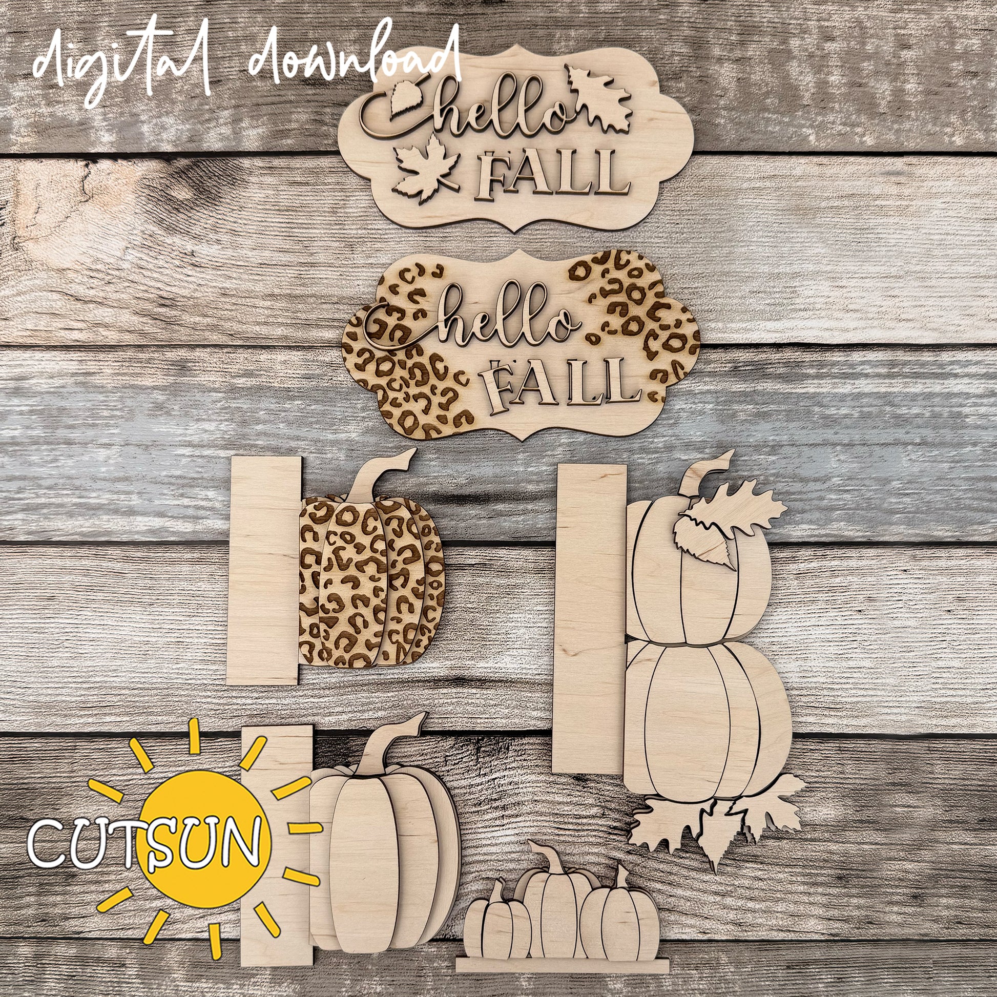 Hello Fall Porch Sign SVG Add-On – Interchangeable Vertical Leaner Laser Cut File