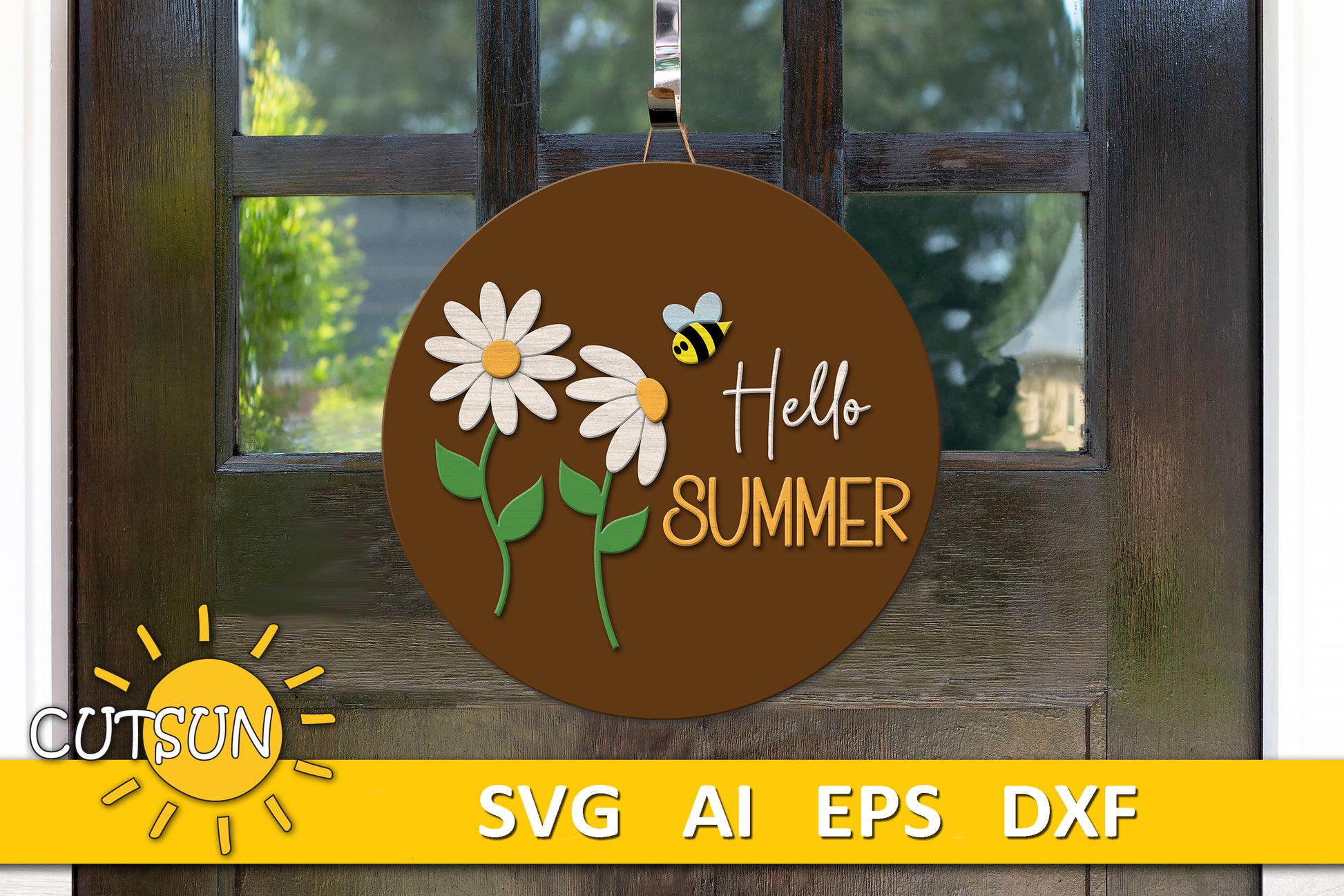 Hello Summer Door Hanger SVG | Daisies and Bee SVG | Summer Welcome Sign SVG | Daisy and Bee Laser Cut File