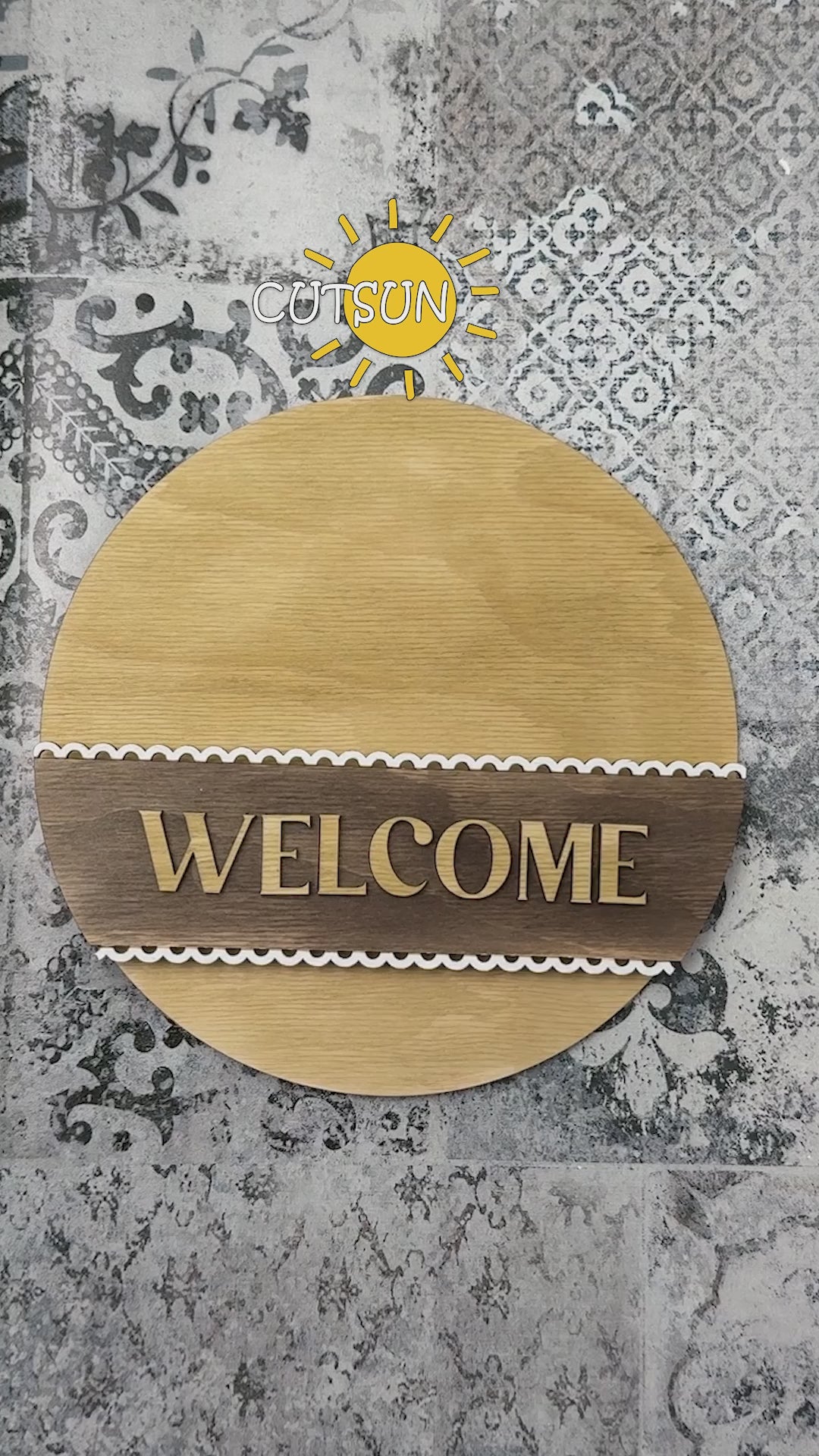 The design is created as a dimensional layered insert that sits on your round base, allowing you to easily switch between seasonal or themed looks without replacing the entire sign. The upper section builds the main farm scene with the cow, barn, and windmill, while the lower layer completes the look with a simple countryside landscape and tractor detail, giving the finished piece a balanced and handcrafted appearance.