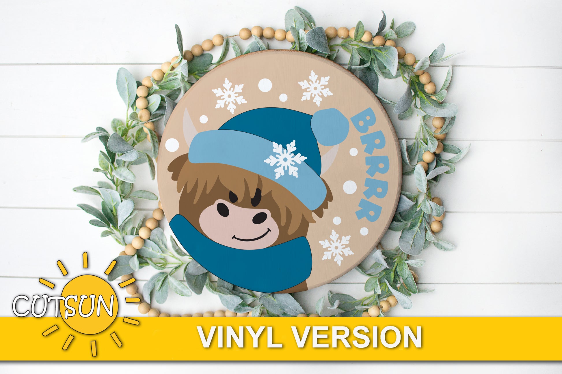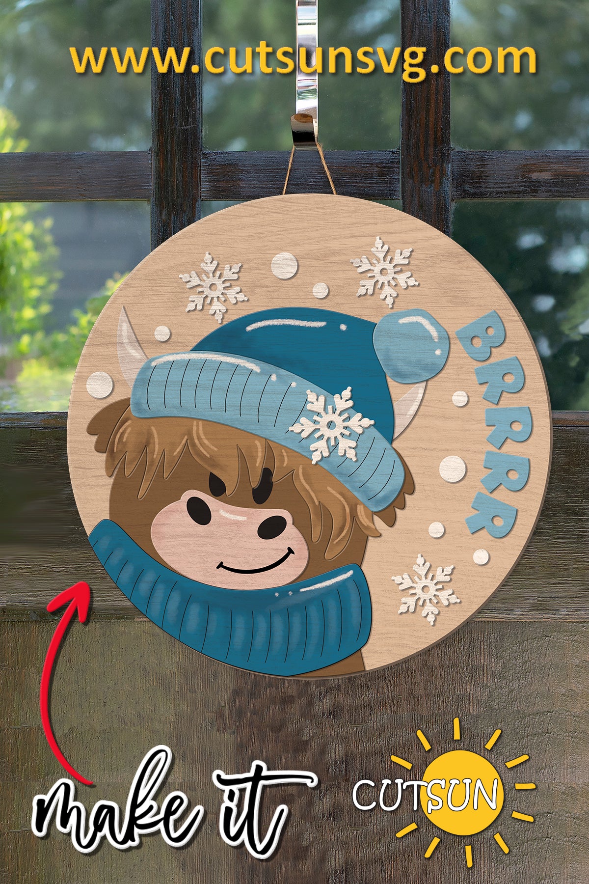 Highland Cow Winter Door Hanger SVG | “Brrrrr” Farmhouse Door Sign | Cute Highland Cow Winter Decor Laser Cut File