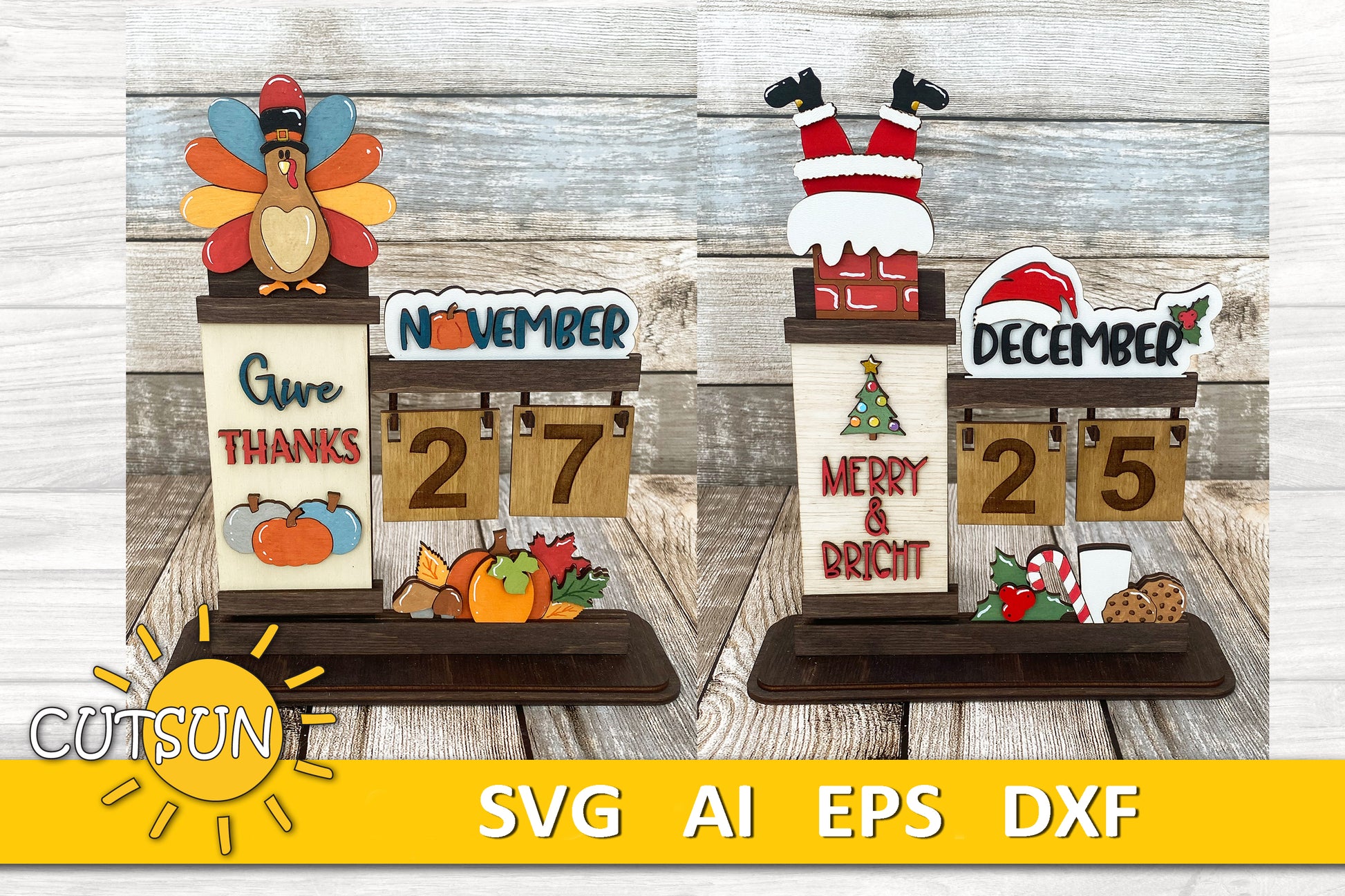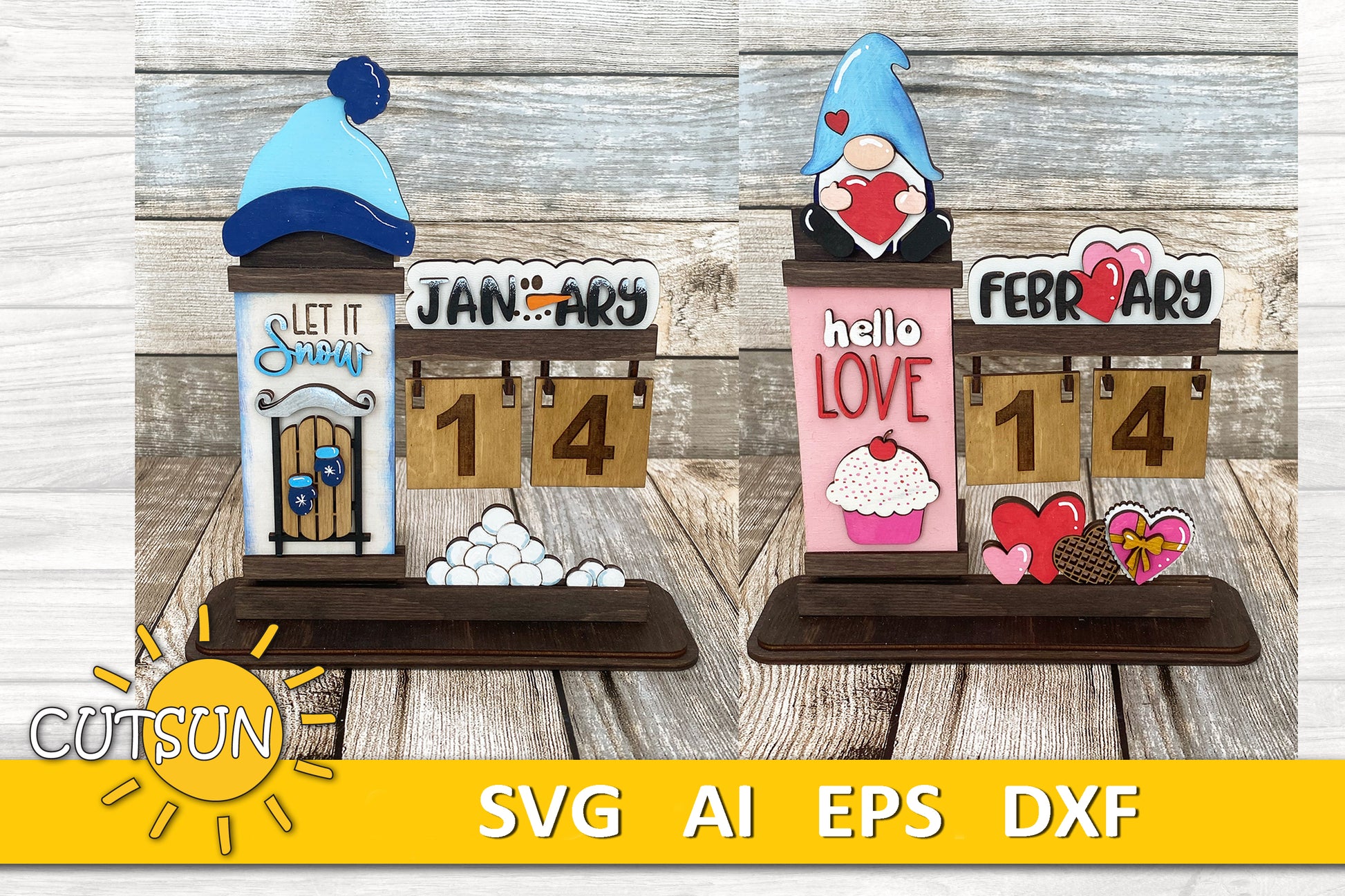 Whether you use all the add-ons or just a few, this calendar looks fantastic with any configuration! Simply download, cut, and assemble your calendar using materials like MDF, plywood, or acrylic.