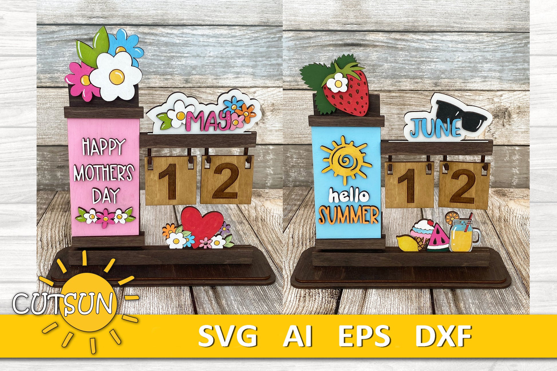 Add a touch of style and function to your home or workspace with this Interchangeable Desktop Calendar SVG Bundle, designed for use with Glowforge, Xtool, Omtech, and other laser cutters.
