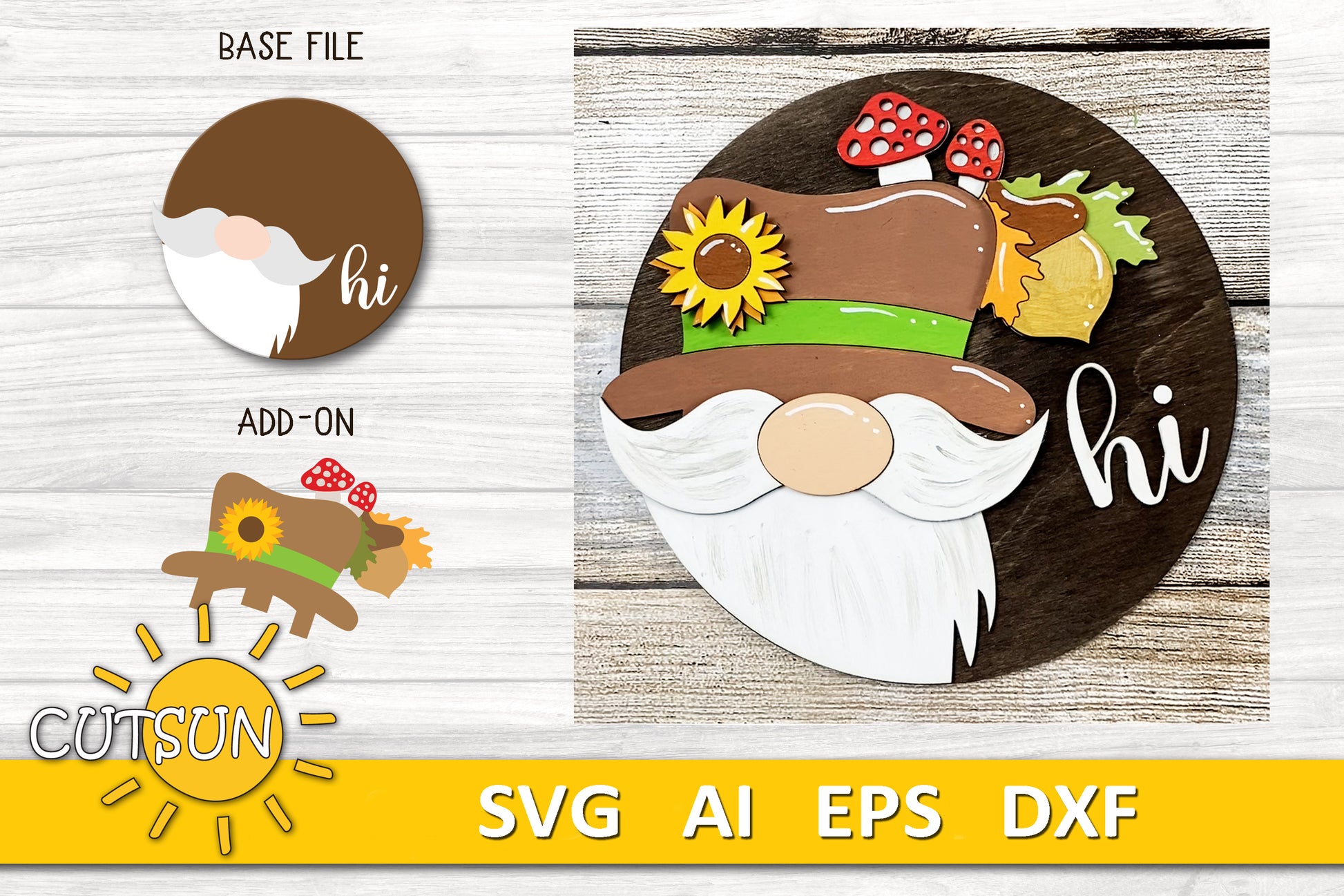 Interchangeable Round Gnome door hanger SVG Autumn Gnome svg Fall Gnome svg Add-on Gnome Hi Door sign svg Glowforge SVG Laser cut file