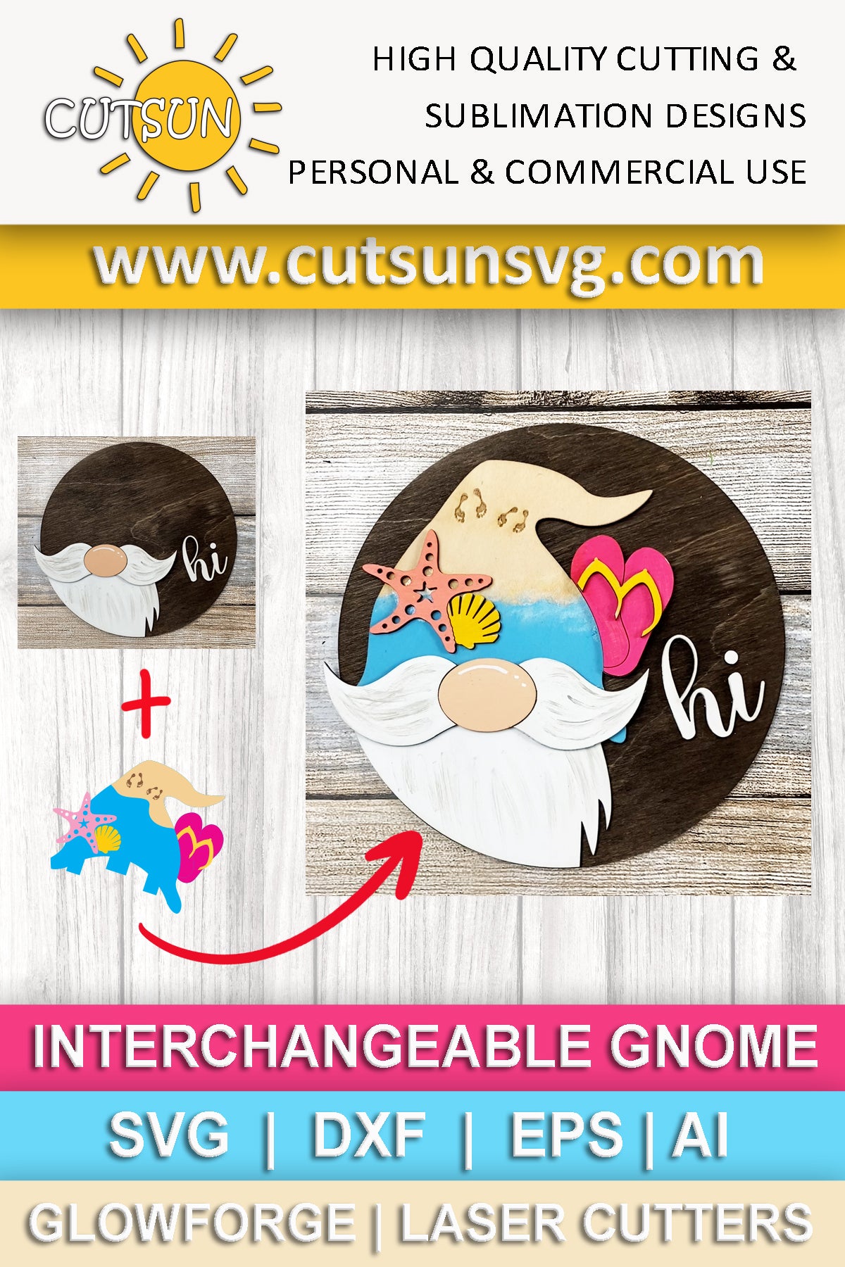 Summer Gnome Door Hanger SVG | Interchangeable Welcome Sign | Beach House Gnome SVG | Coastal Front Door Decor Laser Cut File