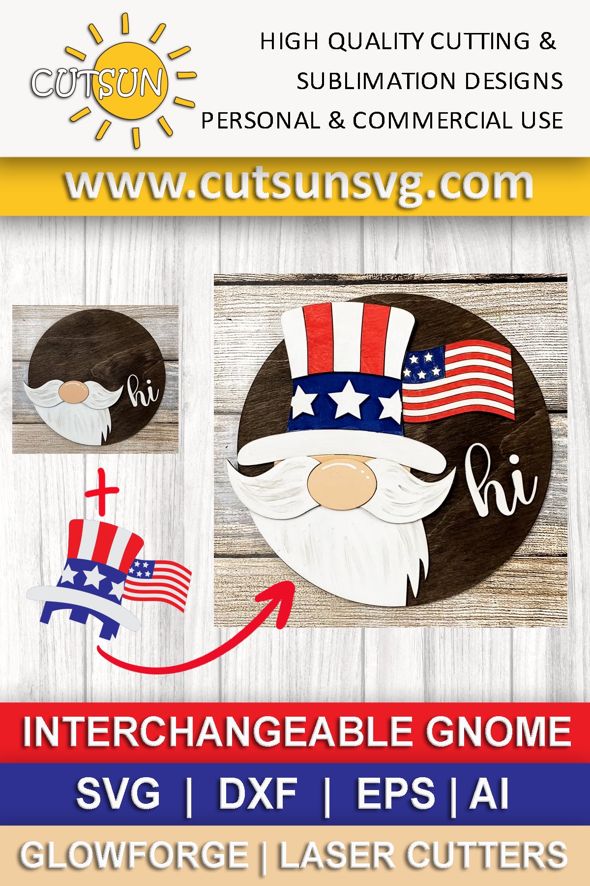 Interchangeable Round Gnome door hanger SVG Summer Gnome svg Patriotic Gnome svg Add-on Gnome Hi Door sign svg Glowforge SVG Laser cut file