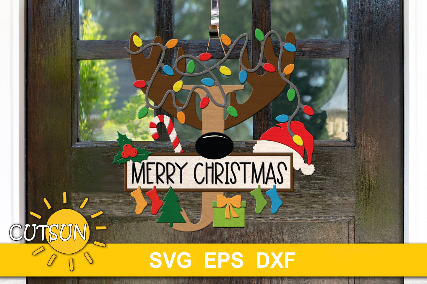 Christmas Monogram Door sign SVG - letter J | Christmas welcome sign SVG | Laser cut file