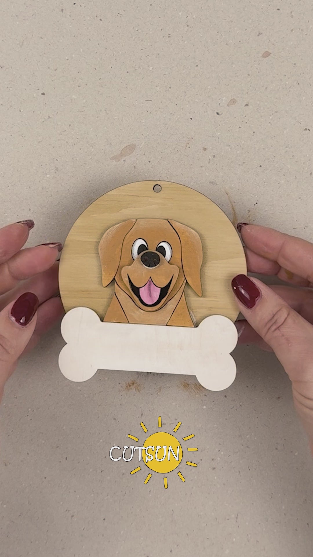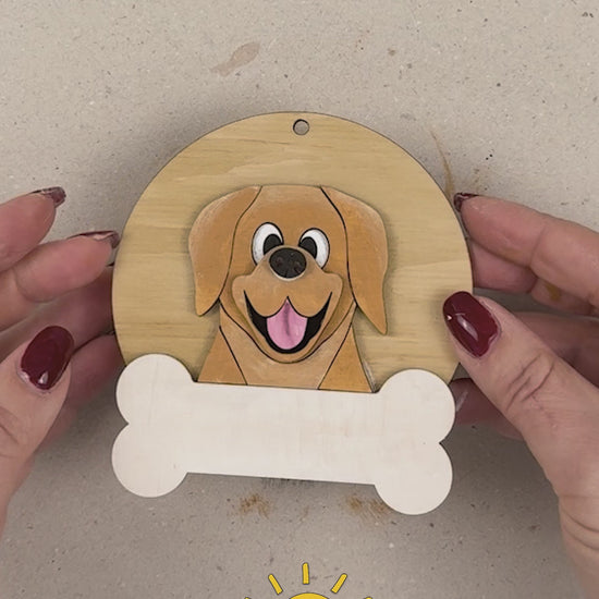 Each ornament is designed specifically for laser cutting and built in layers, making it easy to cut separate pieces, paint them in warm golden tones and assemble them into a dimensional, hand-crafted look. The round base and bone shape keep the design visually balanced, while the expressive face of the golden retriever adds a friendly, heartwarming touch to your holiday projects. These files work beautifully at standard ornament sizes and are ideal for personalized pet gifts, keepsakes for family and friends, or repeatable designs for holiday markets.