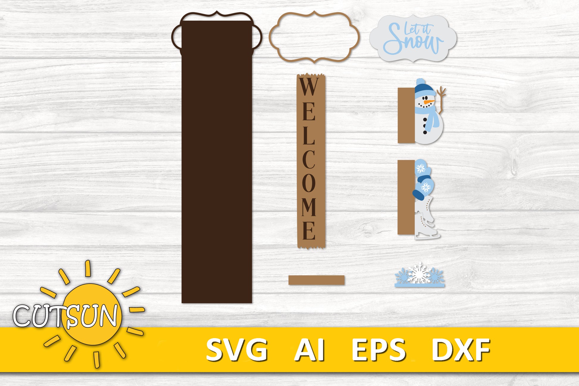 Let It Snow Snowman Porch Sign SVG | Interchangeable Vertical Leaner | Winter Welcome Sign SVG | Snowflake SVG | Laser Cut File
