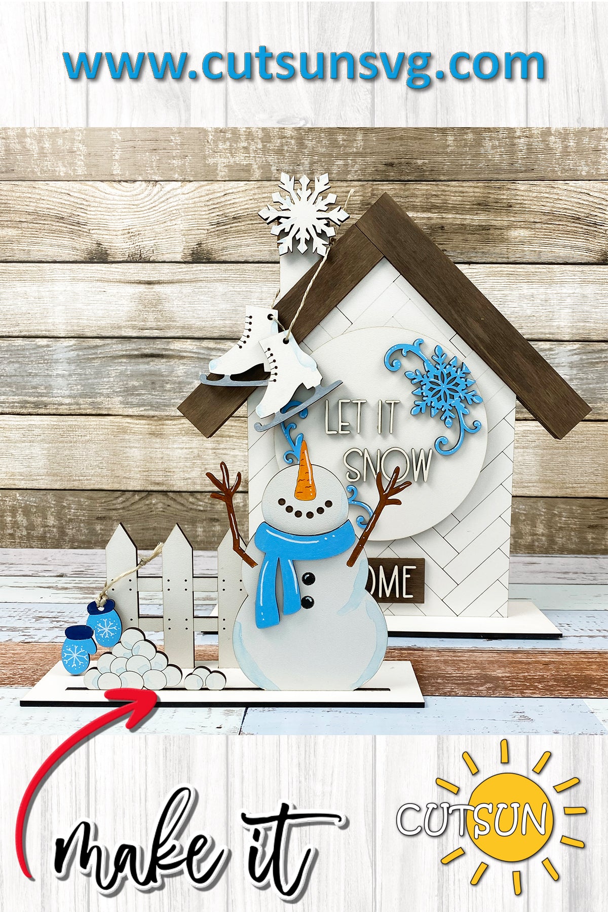 Snowman Let It Snow SVG Add-On for Interchangeable Shelf Decor | House & Fence Set Laser Cut File | Snowflake & Snowman Winter SVG