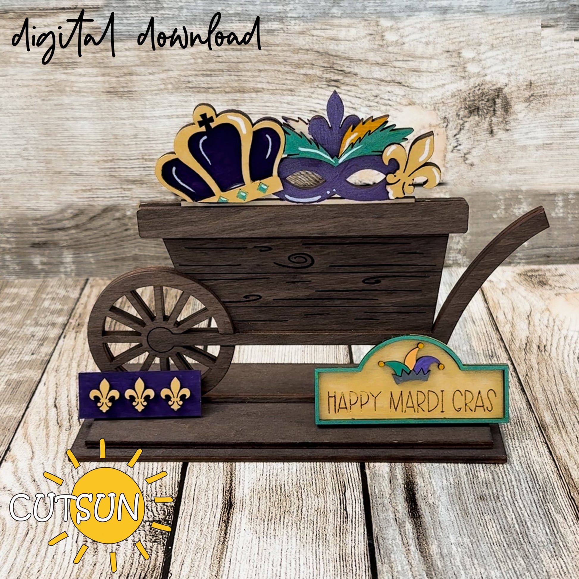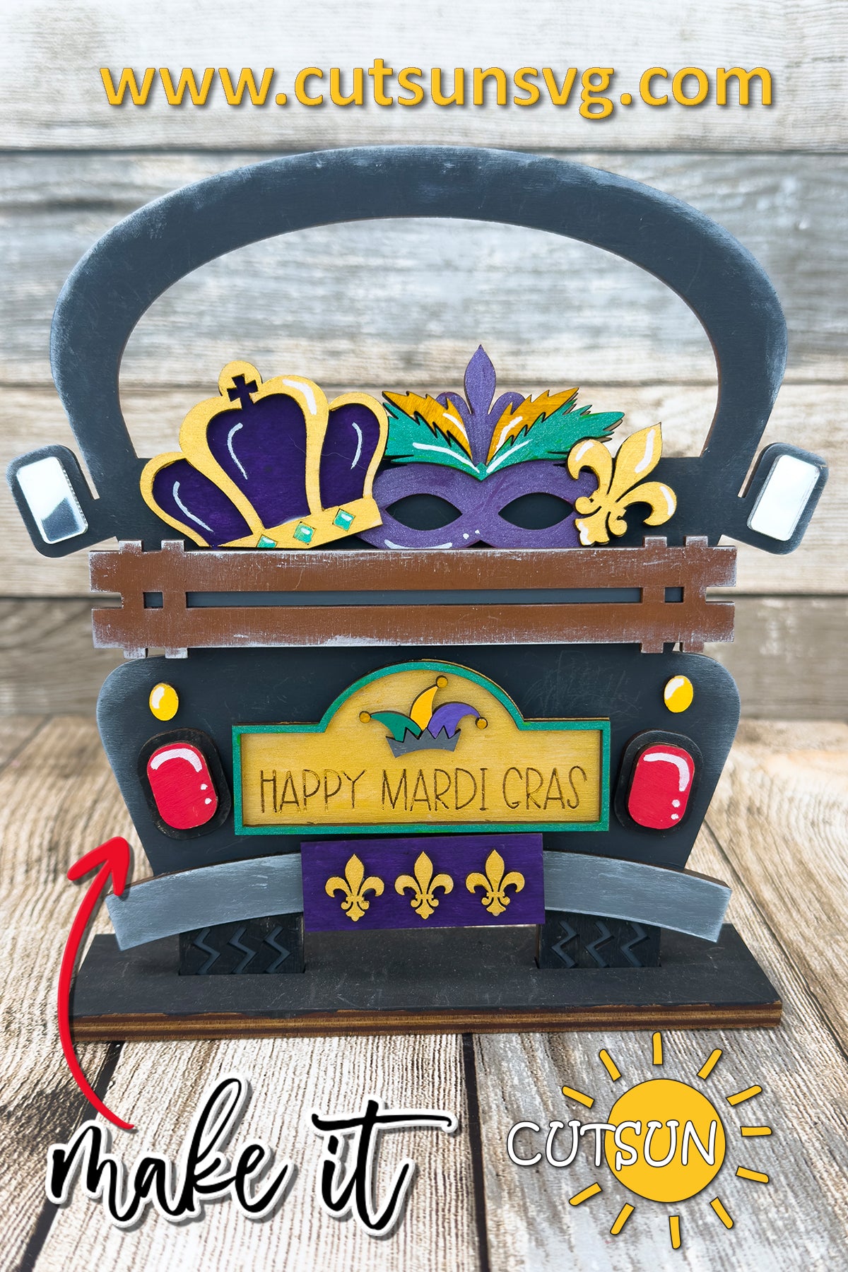 Mardi Gras SVG Add-On for Interchangeable Farmhouse Truck | Happy Mardi Gras Door Decor | Shelf Sitter Laser Cut File