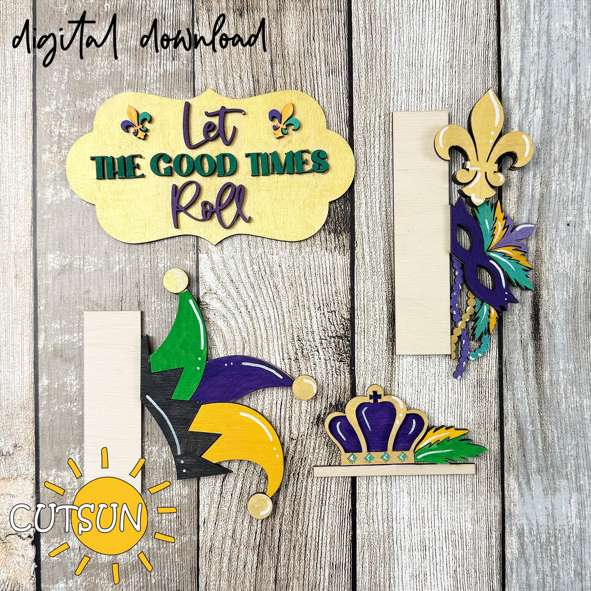 Mardi Gras Porch Sign SVG | Interchangeable Vertical Leaner Add-On | Let the Good Times Roll | Laser Cut File for Carnival Decor | Digital Download