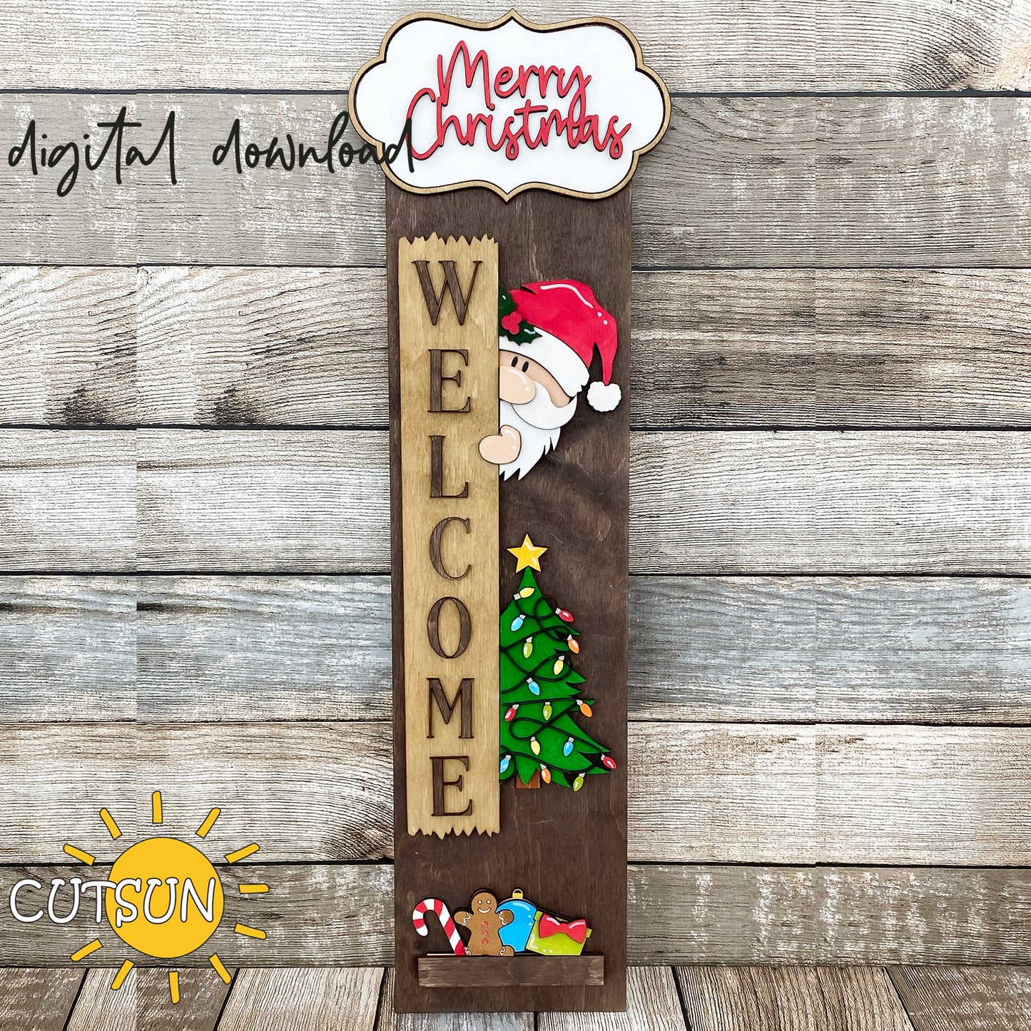 Merry Christmas Porch Sign SVG – Interchangeable Santa Add-On with Free Vertical Leaner for Laser Cutters