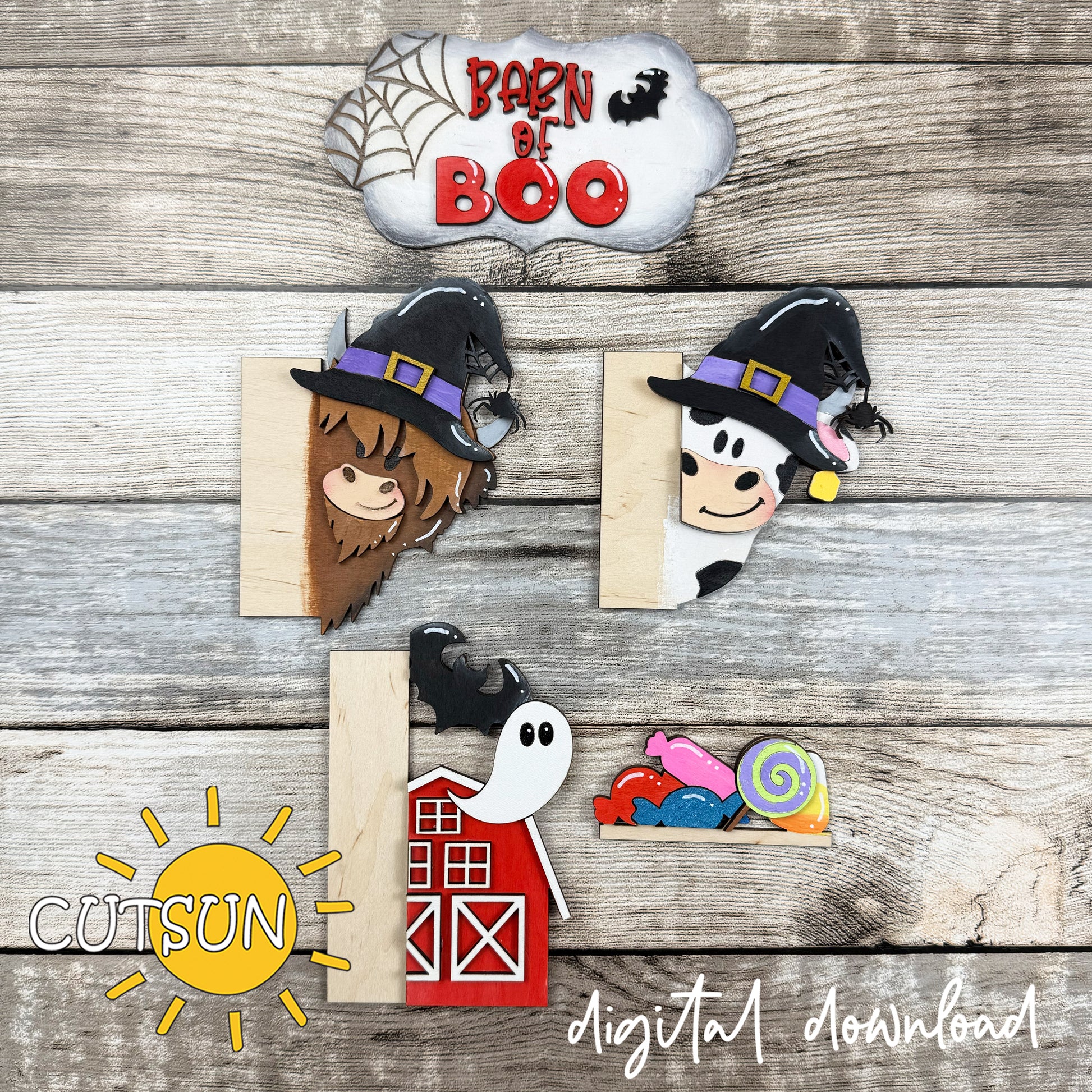 Barn of Boo Halloween Add-On SVG for Vertical Porch Leaners | Witch, Bigfoot & Ghost Welcome Sign | Laser Cut File