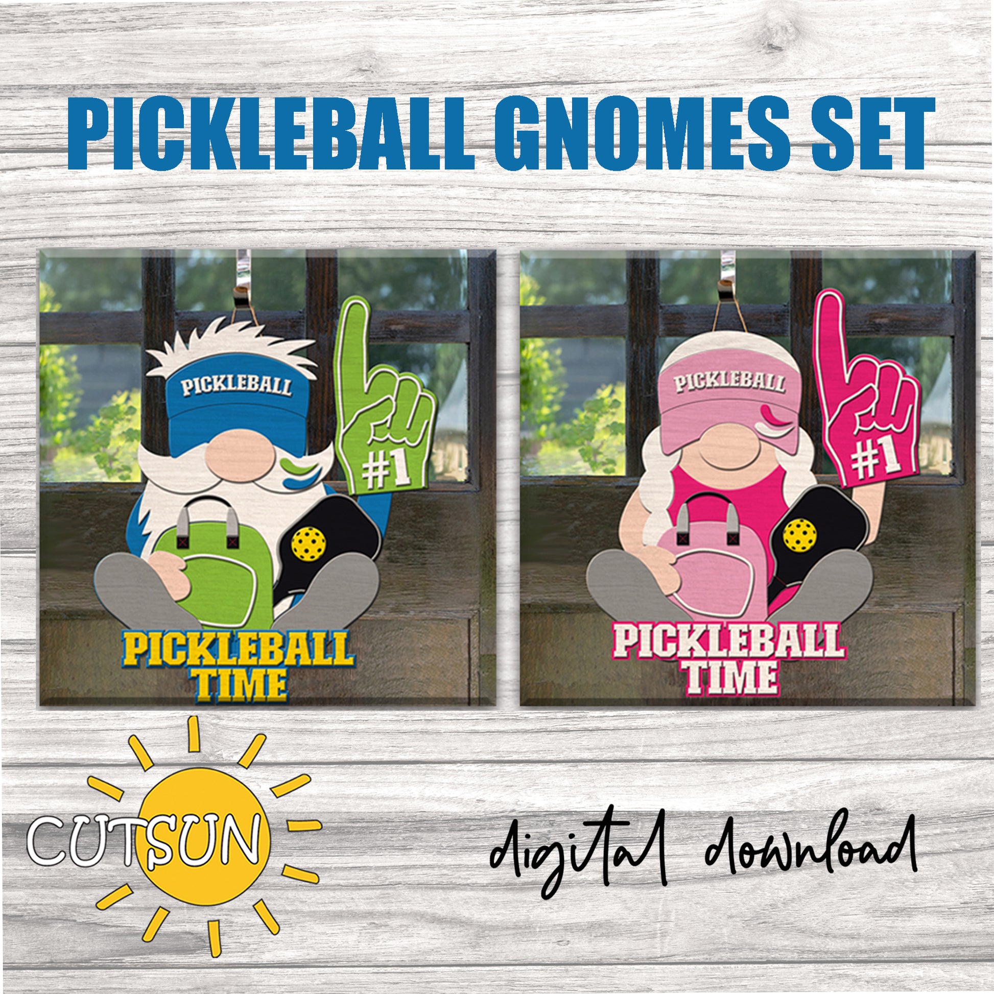 Featuring two versions - one with a girl gnome and one with a boy gnome holding a foam hand, bag, paddle, and ball, this laser-cut design is perfect for welcoming guests to your home and showcasing your love of pickleball. 🏆